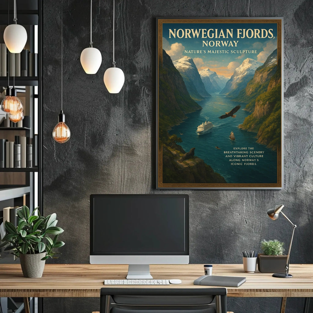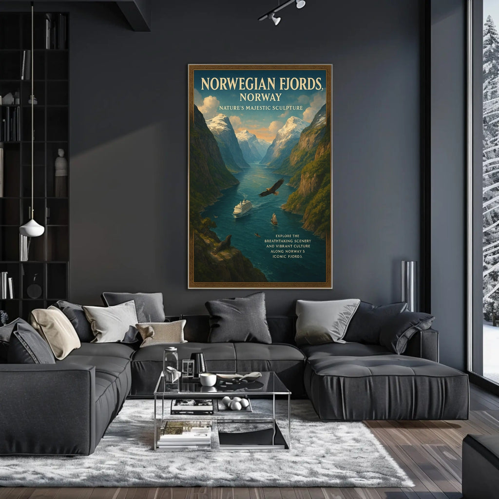 This poster captures the essence of Norwegian Fjords Natures Majestic Sculpture. Designed for decor lovers and wanderlust spirits, this art print adds charm to any room with visuals inspired by real-world scenery.