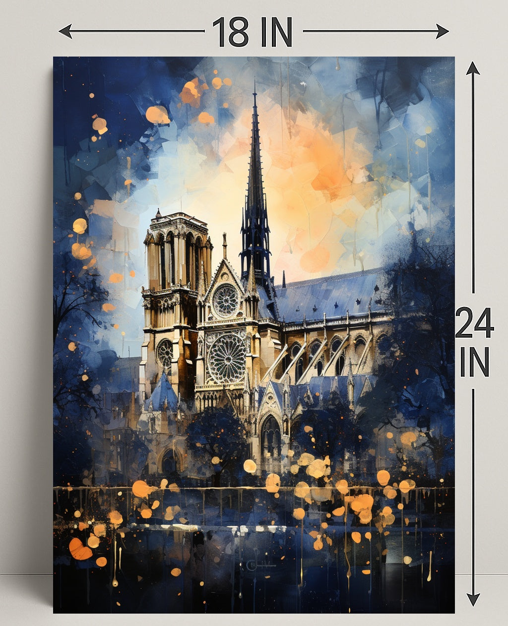 - Striking Visuals: The poster features vivid colors and splashes that bring the iconic Notre-Dame Cathedral to life, adding depth and intrigue to your walls.