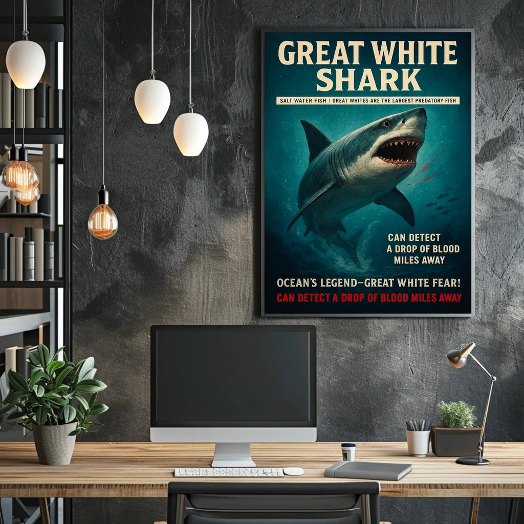 Bring the ocean's legend into your space with this Oceans Legend Great White Shark Poster. Designed in a photography-realism style, it captures a vivid scene inspired by real-world coastal scenery. It's a simple, affordable way to add a touch of wild beauty to any room—no fuss, just striking color and detail.