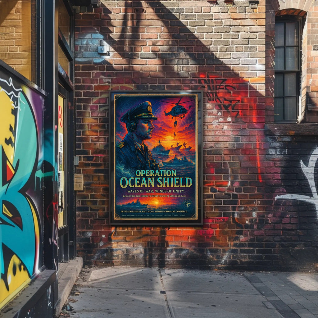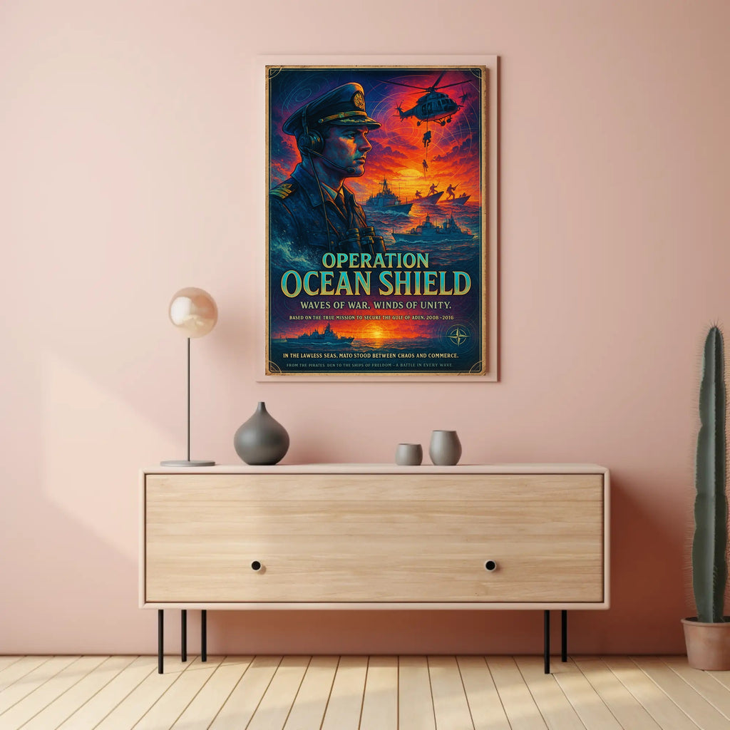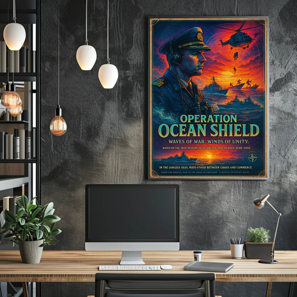 Bring bold maritime bravery to your walls with the Ocean Shield Heroic Naval Military Recruitment Poster from PosterGoat — a striking piece of modern pop art that captures the courage, coordination, and drama of naval operations at sea.