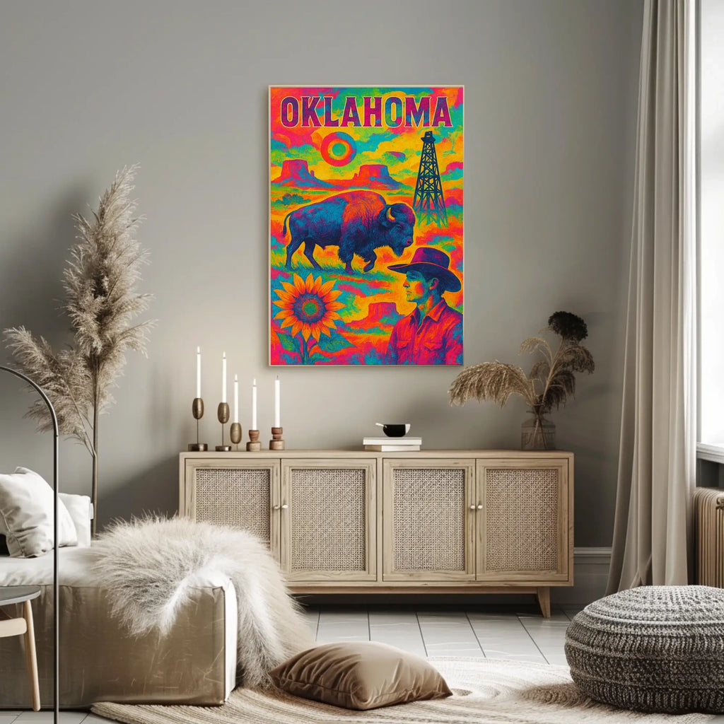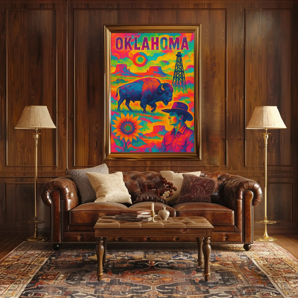 Printed with precision and made to inspire, this artwork is more than decoration—it’s a conversation piece that connects history, culture, and style. Bring the Oklahoma A Vibrant Tribute poster into your home, classroom, or office today and let your walls tell a powerful story.