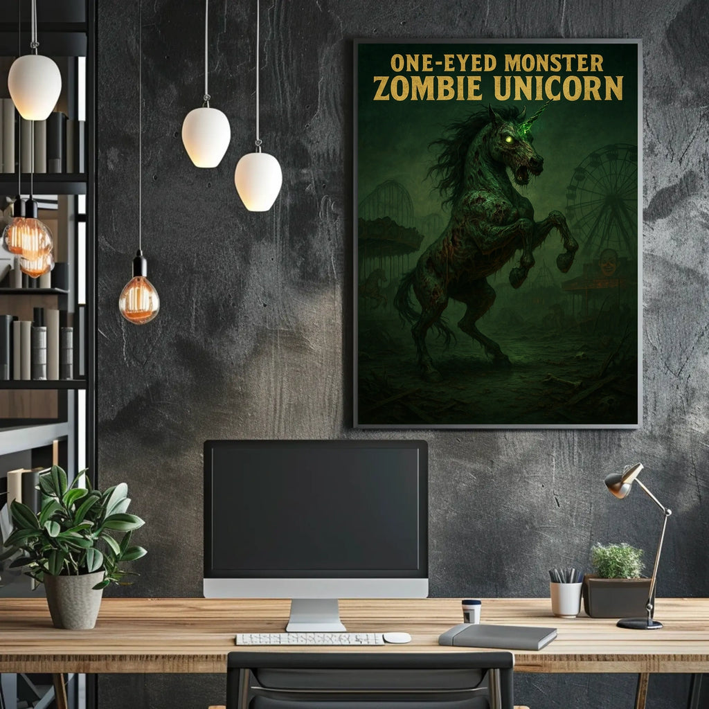 Printed with precision and made to inspire, this artwork is more than decoration—it’s a conversation piece that connects fantasy, culture, and style. Bring One-Eyed Monster Zombie Unicorn Poster into your home, classroom, or office today and let your walls tell a powerful story.