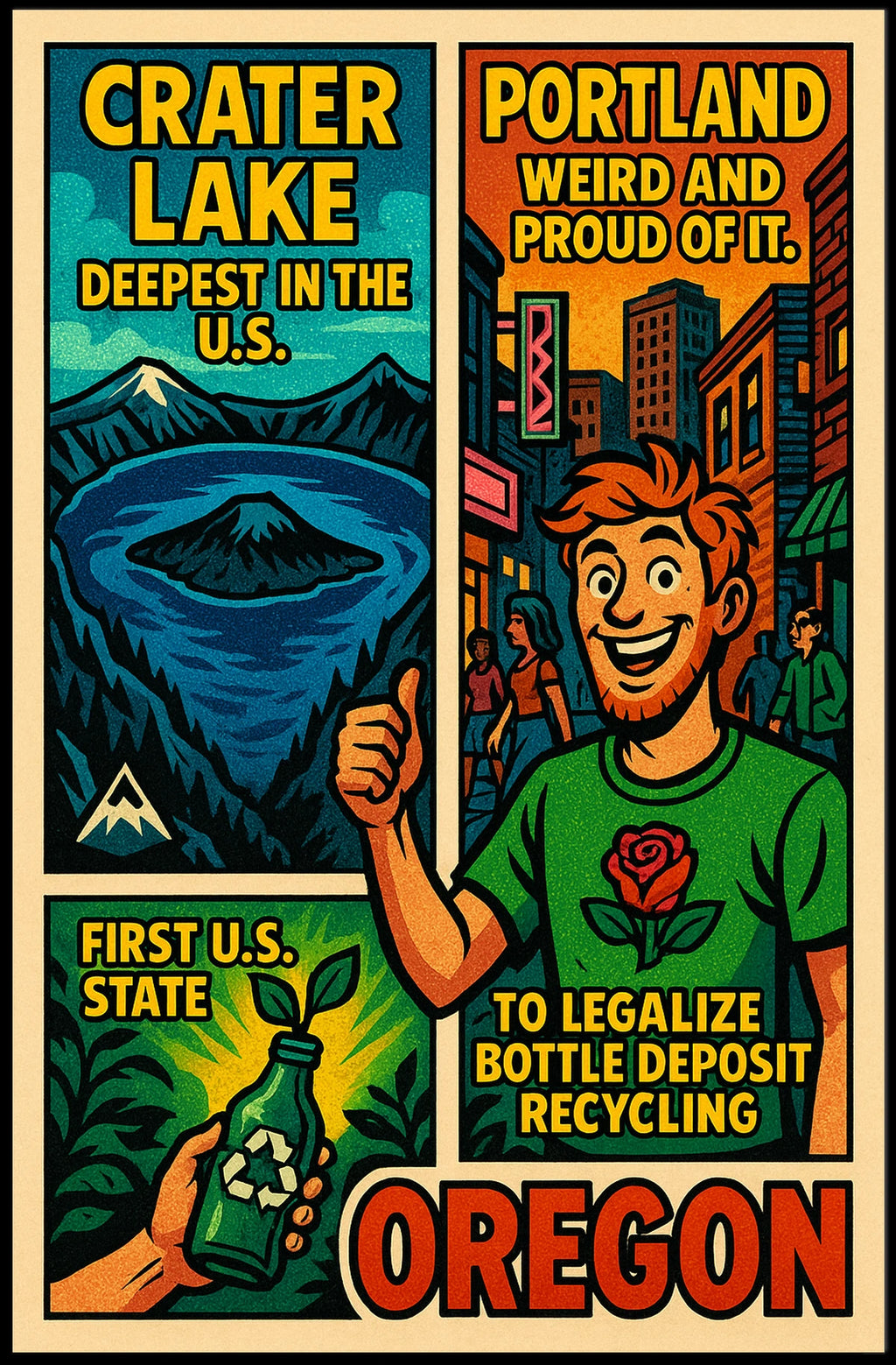 - Vibrant Oregon-inspired imagery — bold colors capture coastlines, forests, and mountains, sparking wanderlust and conversation.