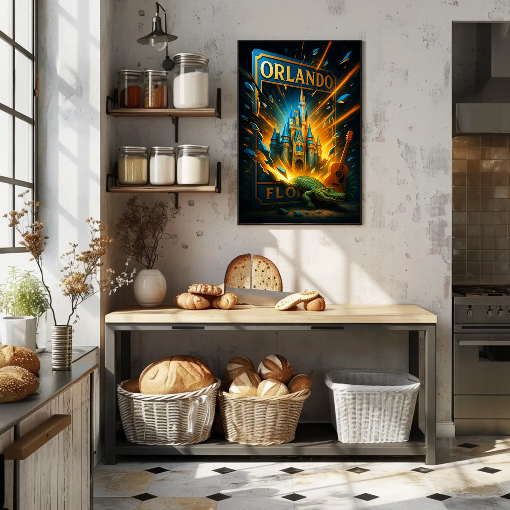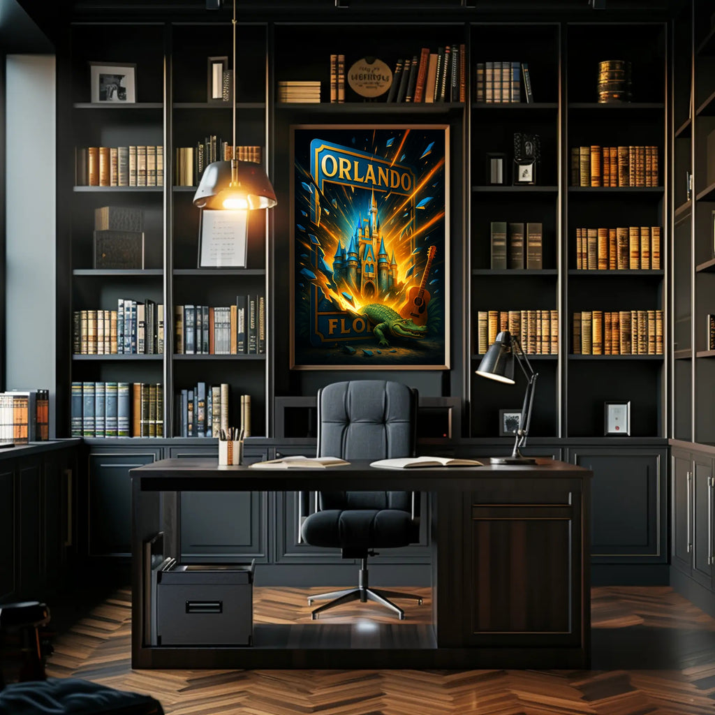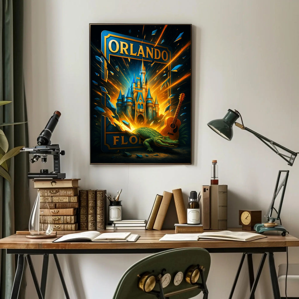 Why you'll love it: The Orlando Fantasy Explosion Poster blends travel-inspired charm with fantasy storytelling — a décor piece that reads like a travel poster gone cinematic. The composition works as both focal art above a console or as part of a curated gallery wall.