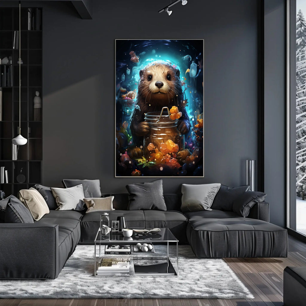 Immerse yourself in a whimsical underwater realm with the Otterly Enchanted poster. This charming artwork features an adorable otter guarding a treasure trove of vibrant gems, inviting you to dive into ocean magic and wonder. Ideal for brightening any room, it adds a playful, nature-infused focal point to your decor.