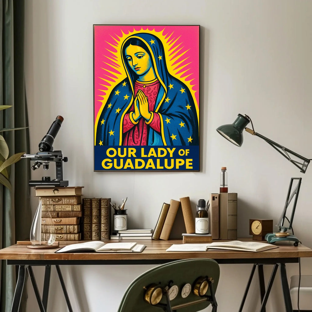 Printed with precision and made to inspire, this artwork is more than decoration—it’s a conversation piece that connects history, culture, and style. Bring Our Lady of Guadalupe into your home, classroom, or office today and let your walls tell a powerful story.
