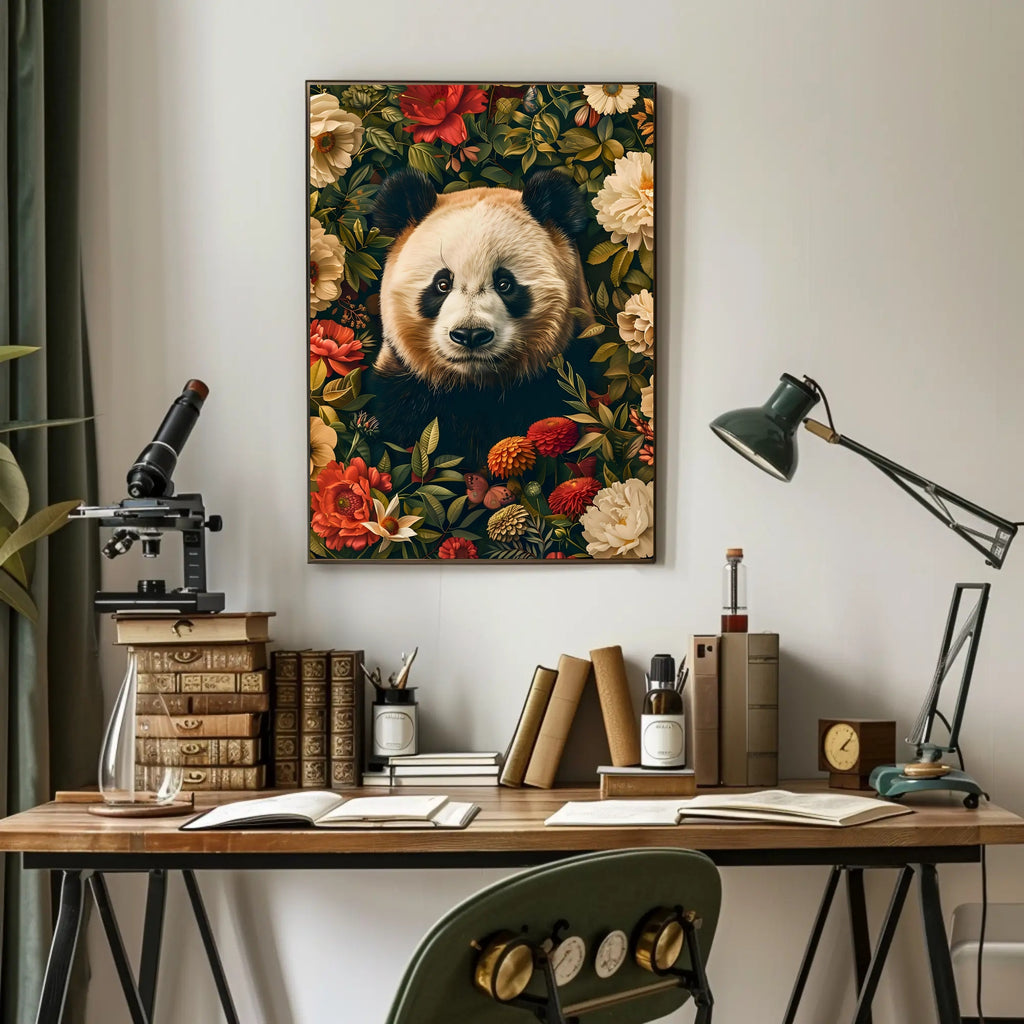 - Detailed, gallery-quality print: Fine art reproduction with crisp detail that highlights the panda's soft fur and the intricate textures of surrounding blooms.