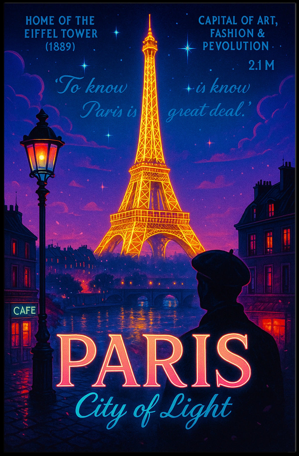 Brighten up any wall with this Paris City of Light Poster. It's a casual, no-fuss decor piece that's perfect for living rooms, bedrooms, or workspaces. The design nods to real-world scenery and brings a warm glow that echoes the City of Light.