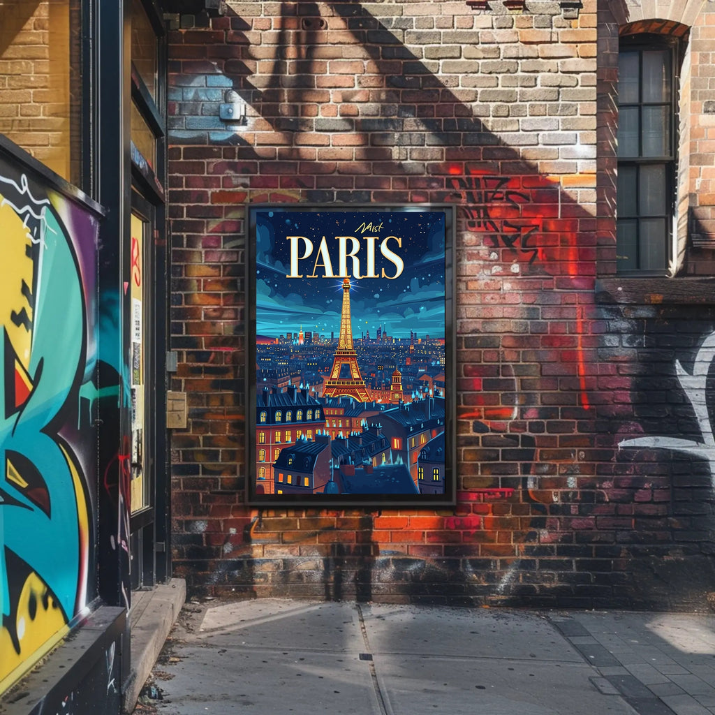 This Paris poster makes an ideal gift for travelers, Francophiles, and anyone who loves illuminated cityscapes — add a touch of nighttime Parisian magic to your walls today. Order now from PosterGoat and bring the City of Lights home.