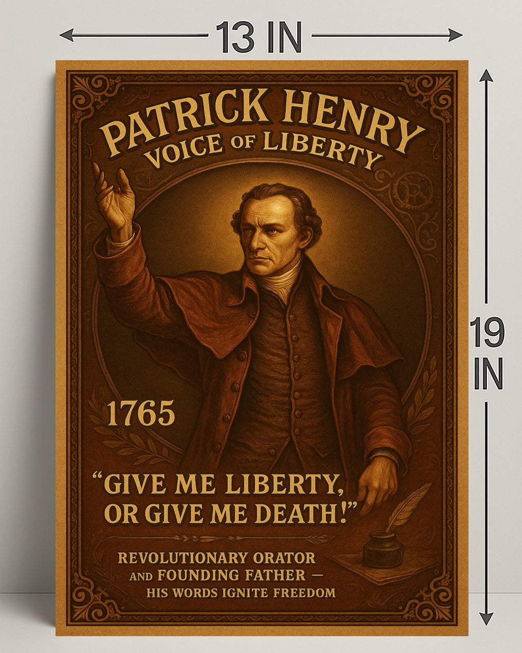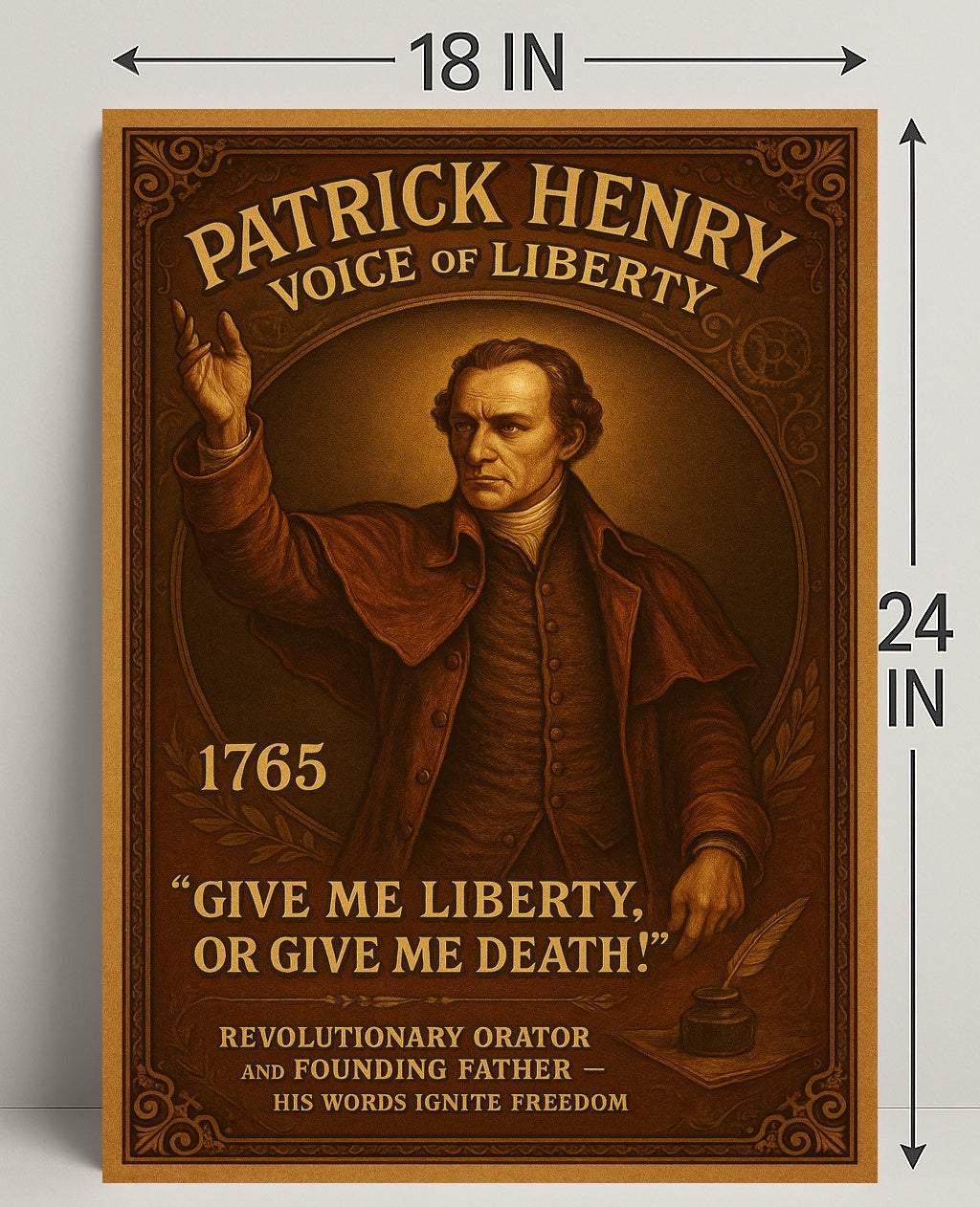 Striking Design: Features a detailed and artistic representation of Patrick Henry, making it a perfect centerpiece for any wall.