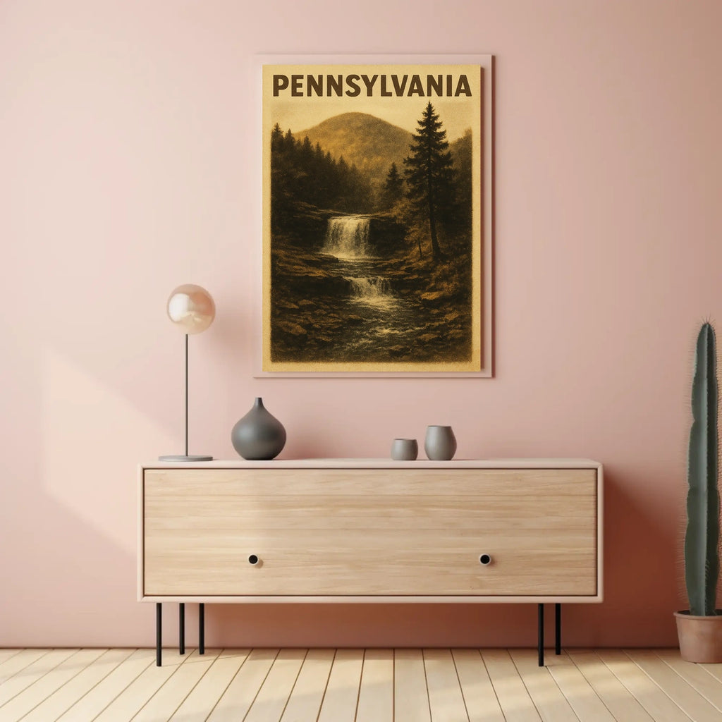 Pennsylvania Scenic Waterfall Poster celebrates the beauty of Pennsylvania Scenic Waterfall with a timeless wall art print. Designed for decor lovers and wanderlust spirits, this art print adds charm to any room with visuals inspired by real-world scenery.