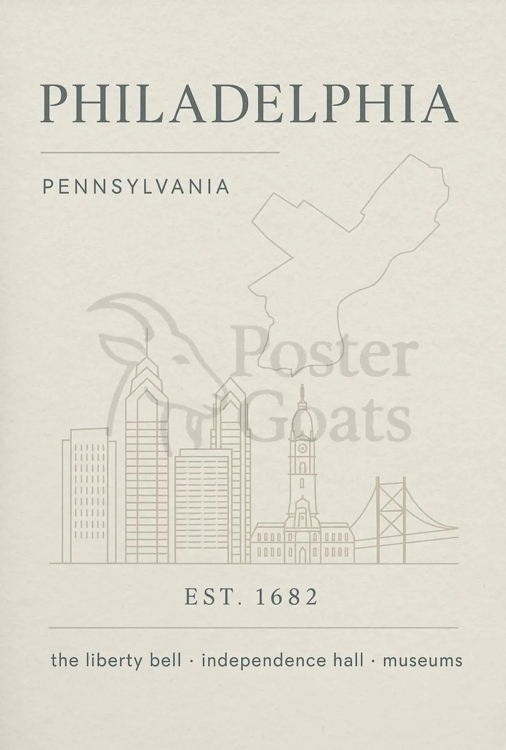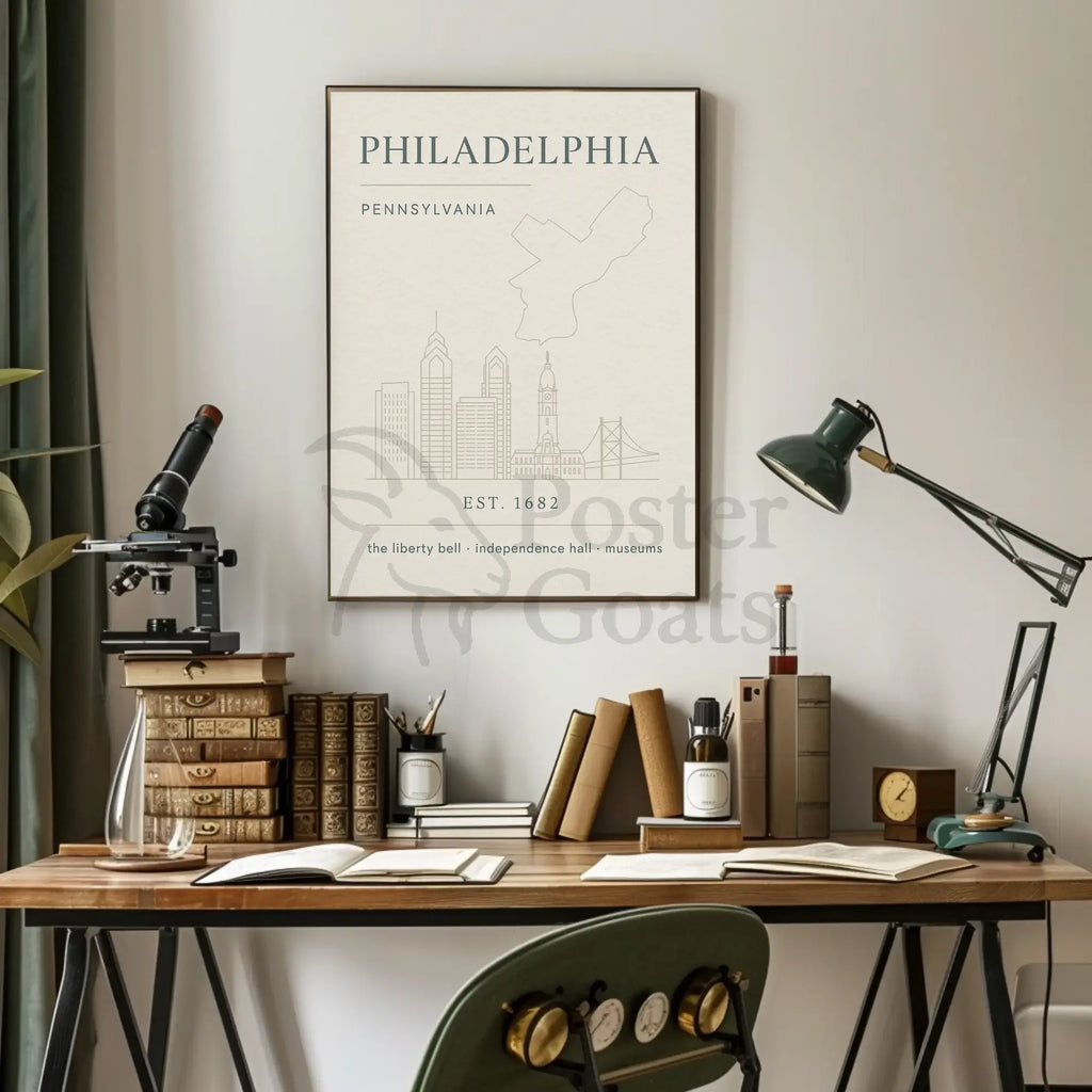 This Philadelphia poster is a sophisticated choice for anyone seeking an elegant reminder of Pennsylvania’s historic capital—an understated centerpiece that pairs beautifully with modern and classic interiors. Bring home a piece of the city’s story and elevate your wall art collection with PosterGoat.