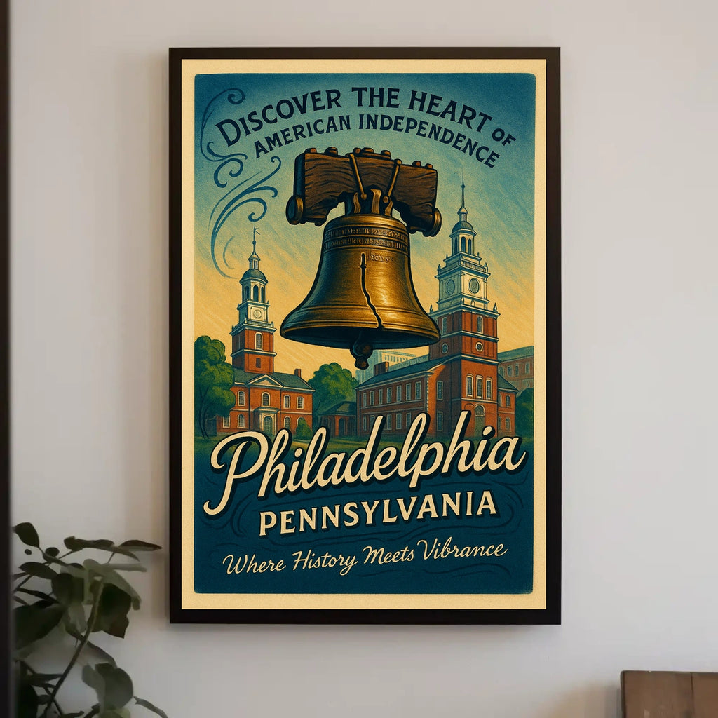 - Prominent Liberty Bell and Independence Hall imagery as striking wall art focal points.