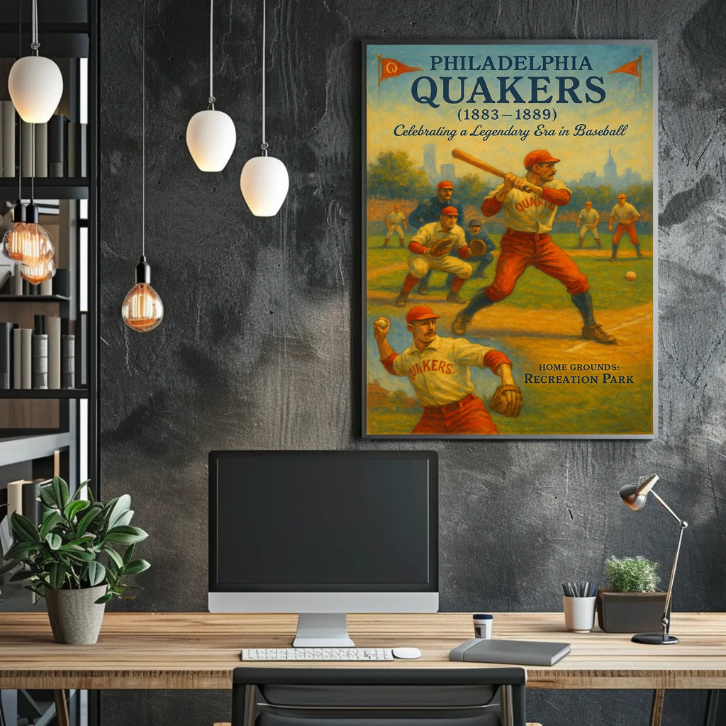 Celebrate a legendary era with this Philadelphia Quakers Celebrating A Poster. This art print blends baseball history with wanderlust-inspired visuals, infusing your space with nostalgic charm and timeless appeal.