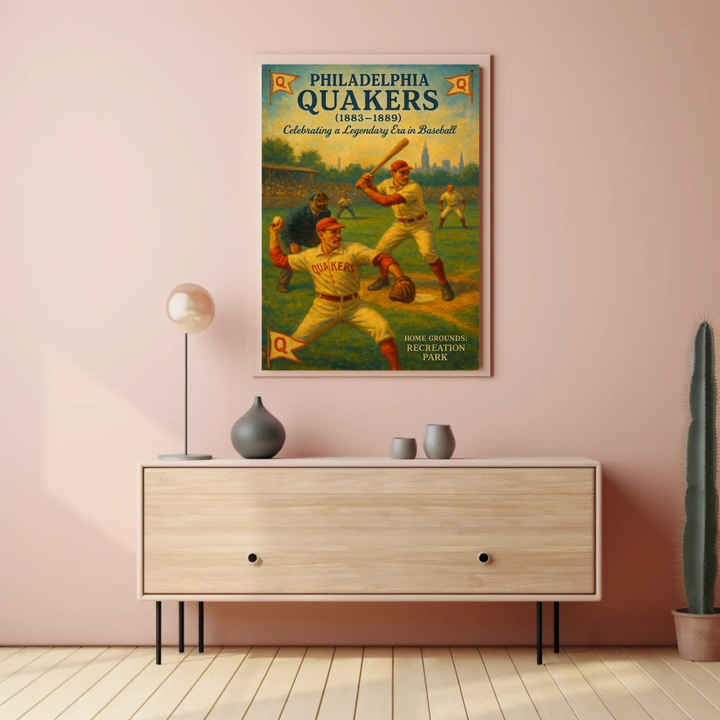 Capture the spirit of a legendary era with the Philadelphia Quakers Celebrating A Poster. This art print blends historic baseball nostalgia with contemporary living spaces, offering a stylish centerpiece for fans and wanderlust spirits alike. Surrounded by real-world scenery-inspired visuals, it brings charm, conversation, and a touch of timeless Americana to any room.