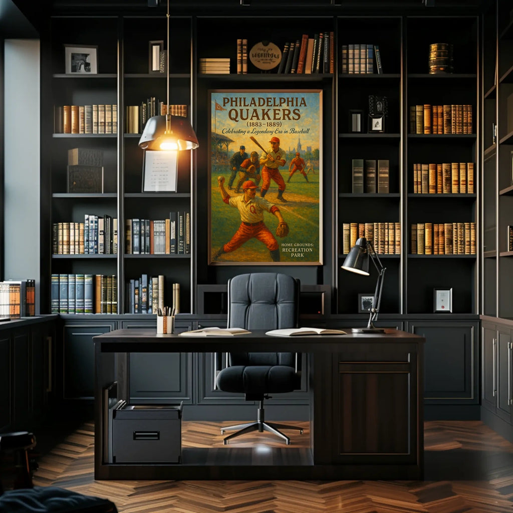 Celebrate a legendary era with this Philadelphia Quakers Celebrating A Poster, a vibrant art print that blends sports nostalgia with stylish decor. Designed for fans and wanderers alike, it brings history and excitement to any room, turning walls into a narrative of community, triumph, and timeless baseball charm.