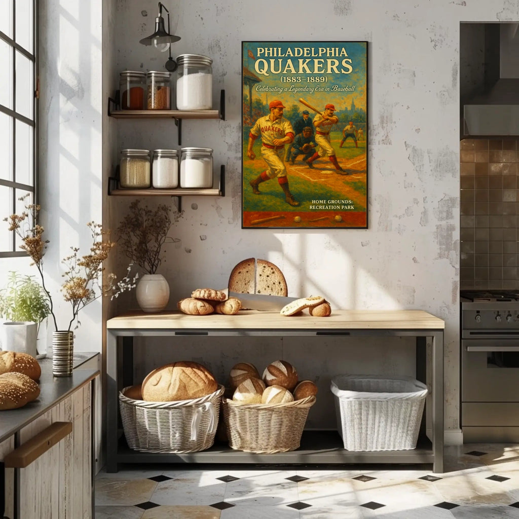 Celebrate a legendary era with this Philadelphia Quakers Celebrating Poster. This evocative art print blends baseball history with wanderlust-inspired flair, turning any wall into a storytelling centerpiece that fans and decor lovers will adore. A perfect accent for fans and collectors.