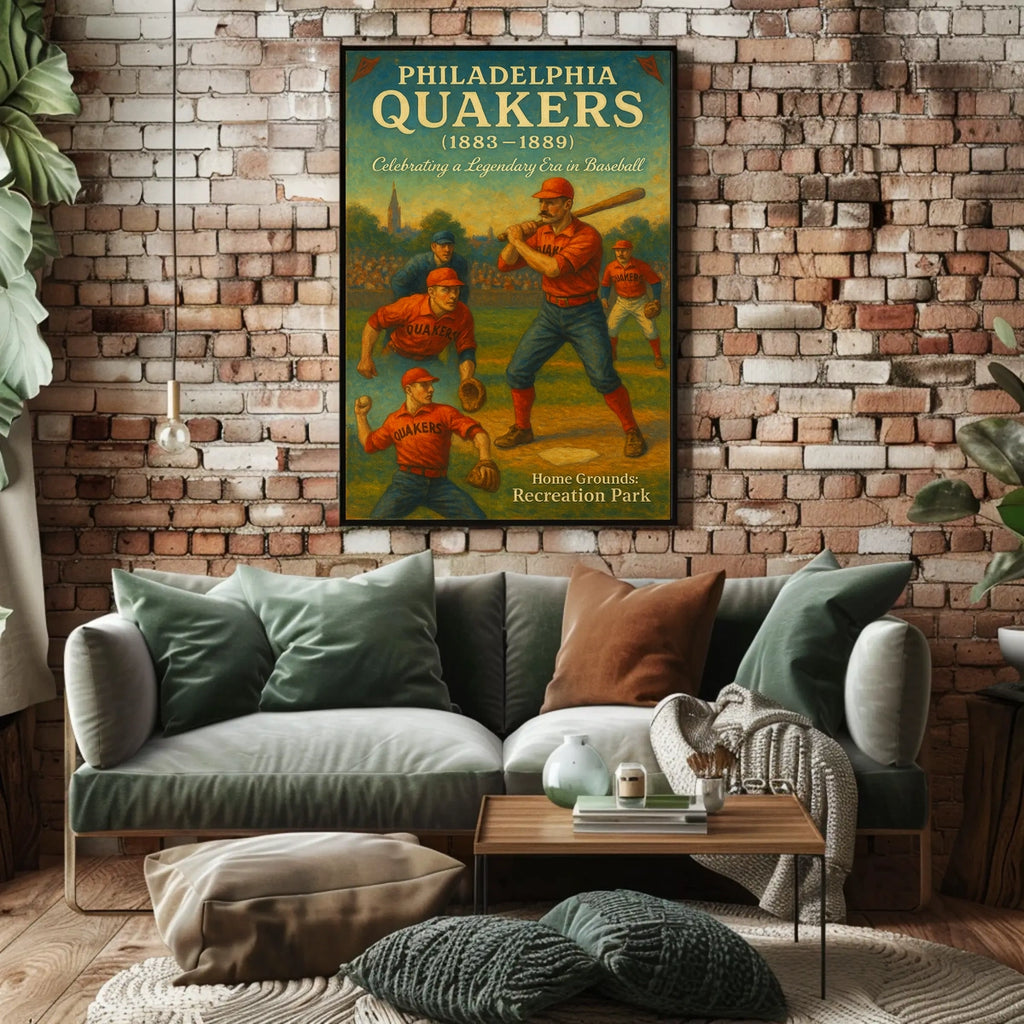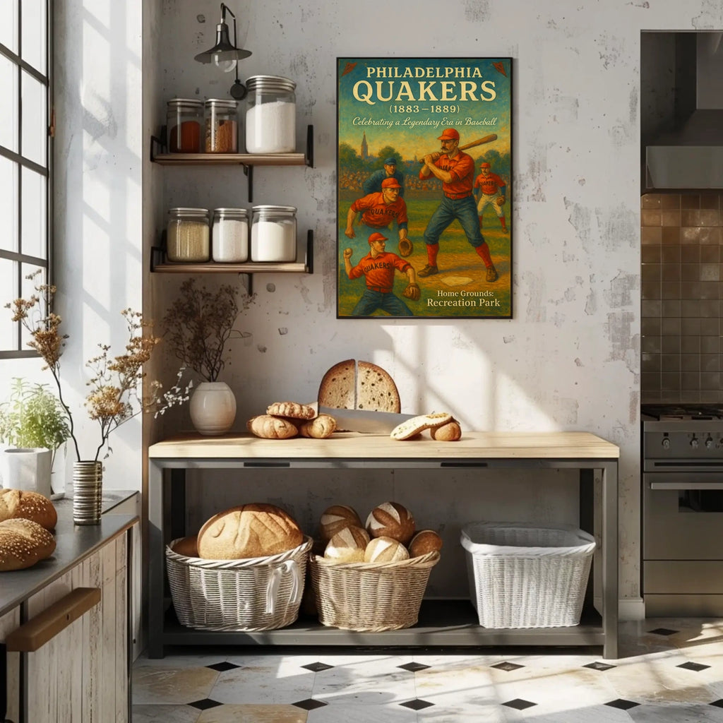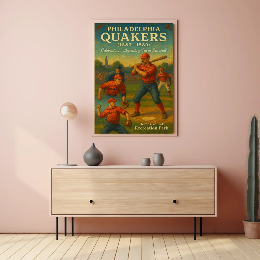 Immerse yourself in the spirit of classic baseball with this Philadelphia Quakers Celebrating A Poster. This art print captures a legendary era with scenic charm, perfect for fans of travel, history, and bold wall decor that tells a story.