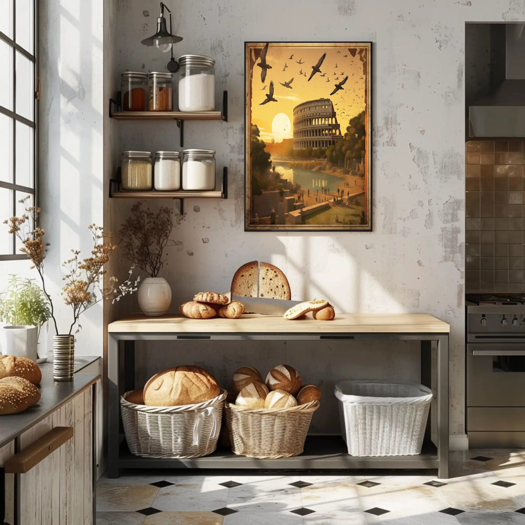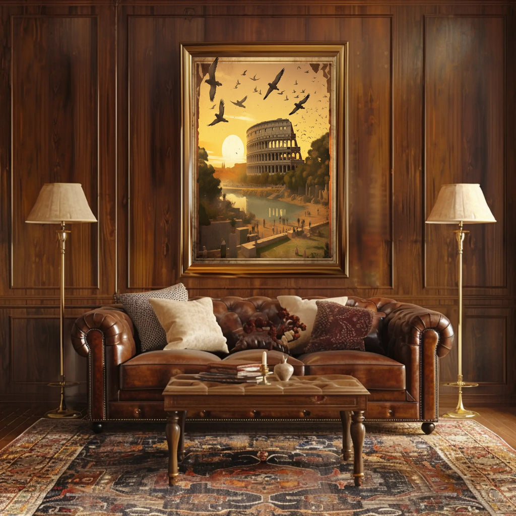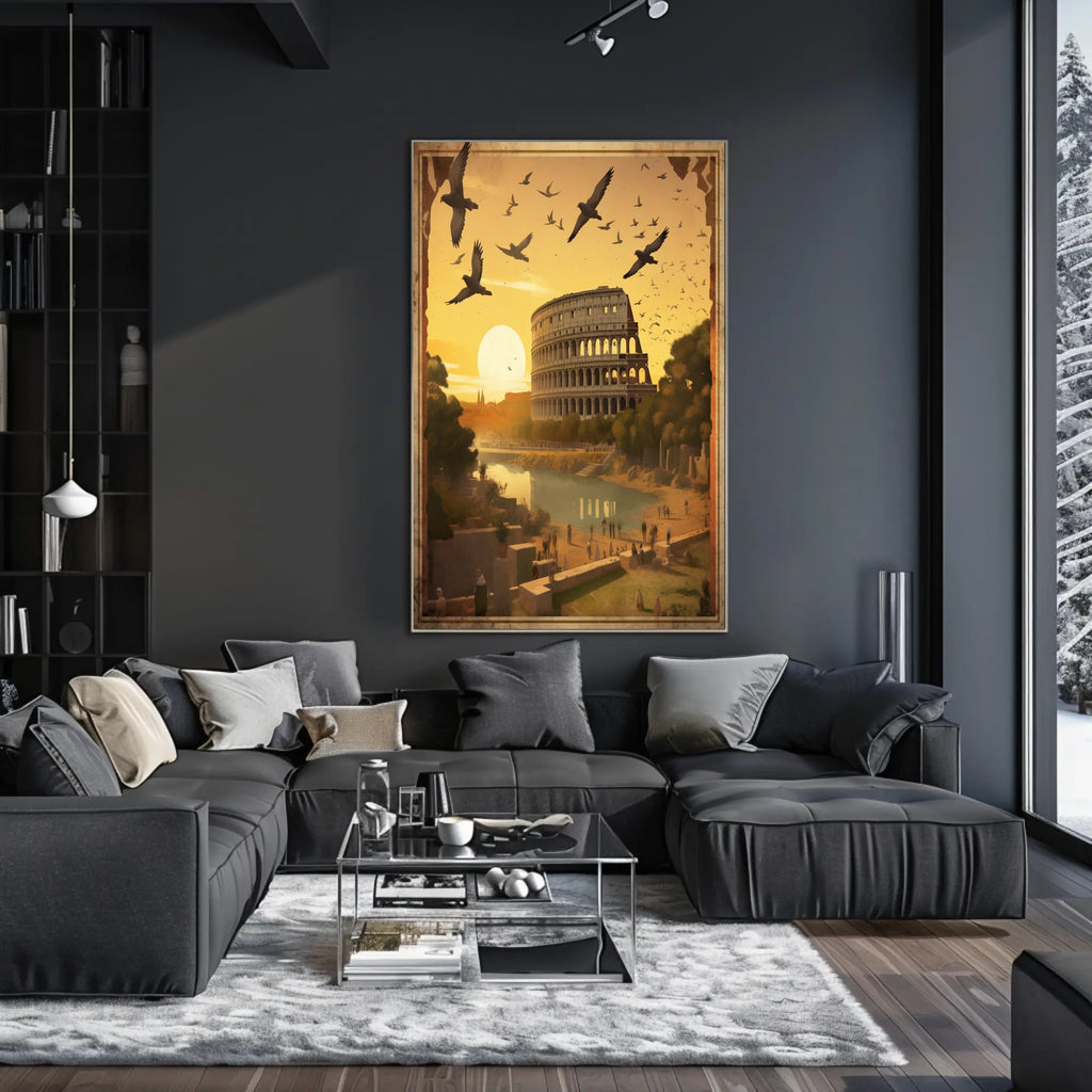 Why choose this poster? The warm palette and careful detailing invite viewers into a nostalgic vista of Rome’s ancient grandeur while the birds in flight bring life and movement—making this piece both decorative and emotionally resonant.