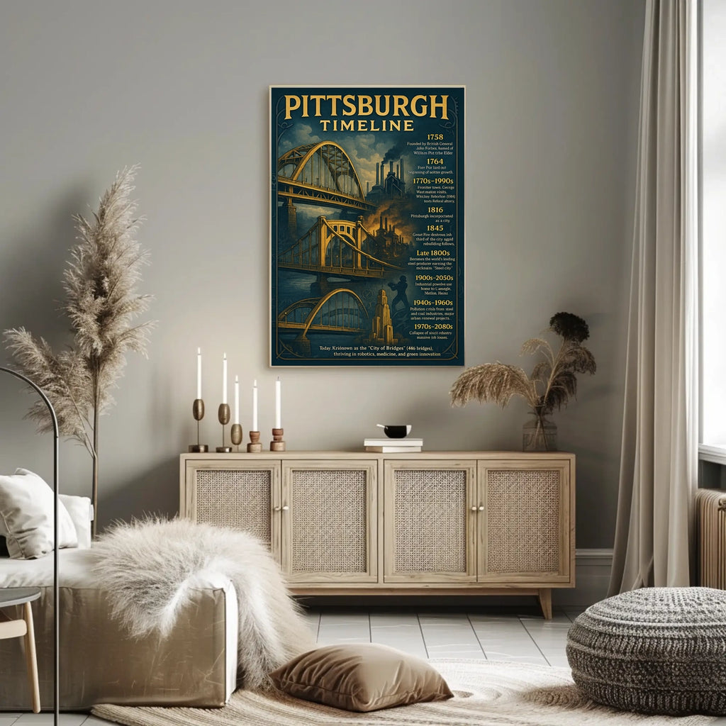 Elevate your space with a wall art piece that honors Pittsburgh’s character and inspires everyday curiosity. Order the Pittsburgh Timeline Poster today to unlock a sophisticated focal point that fits both casual and formal decor. Shop now and start a journey on your wall.