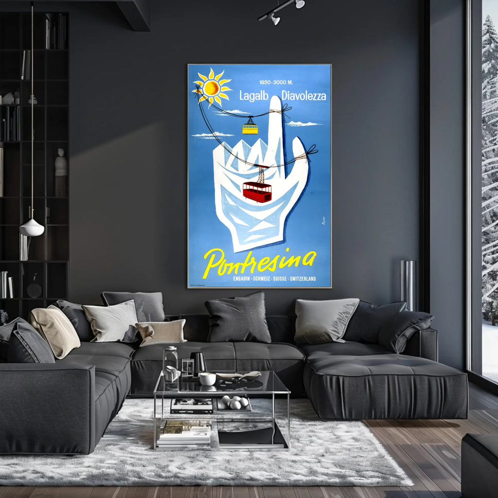 Why you'll love it: This Pontresina poster blends nostalgic travel vibes with modern simplicity — a versatile wall art piece that elevates interiors while sparking wanderlust. Use it as a focal point above a console, inside a black frame for contrast, or grouped with other landscape art for a curated gallery wall.