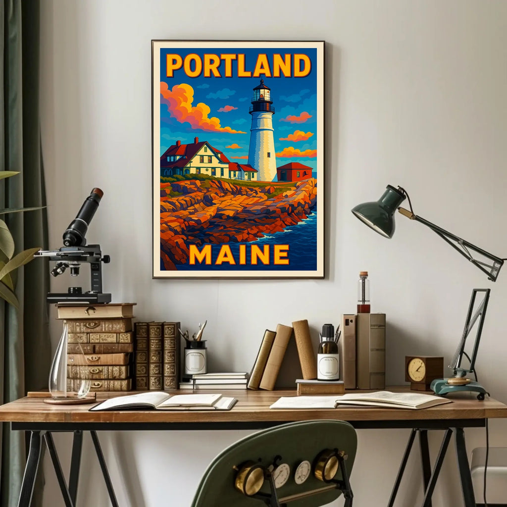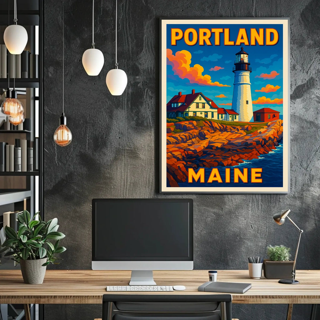 Ideal as a decorative statement and a memorable souvenir for travelers and lighthouse enthusiasts alike, this Portland, Maine Lighthouse poster brings coastal charm to any space.