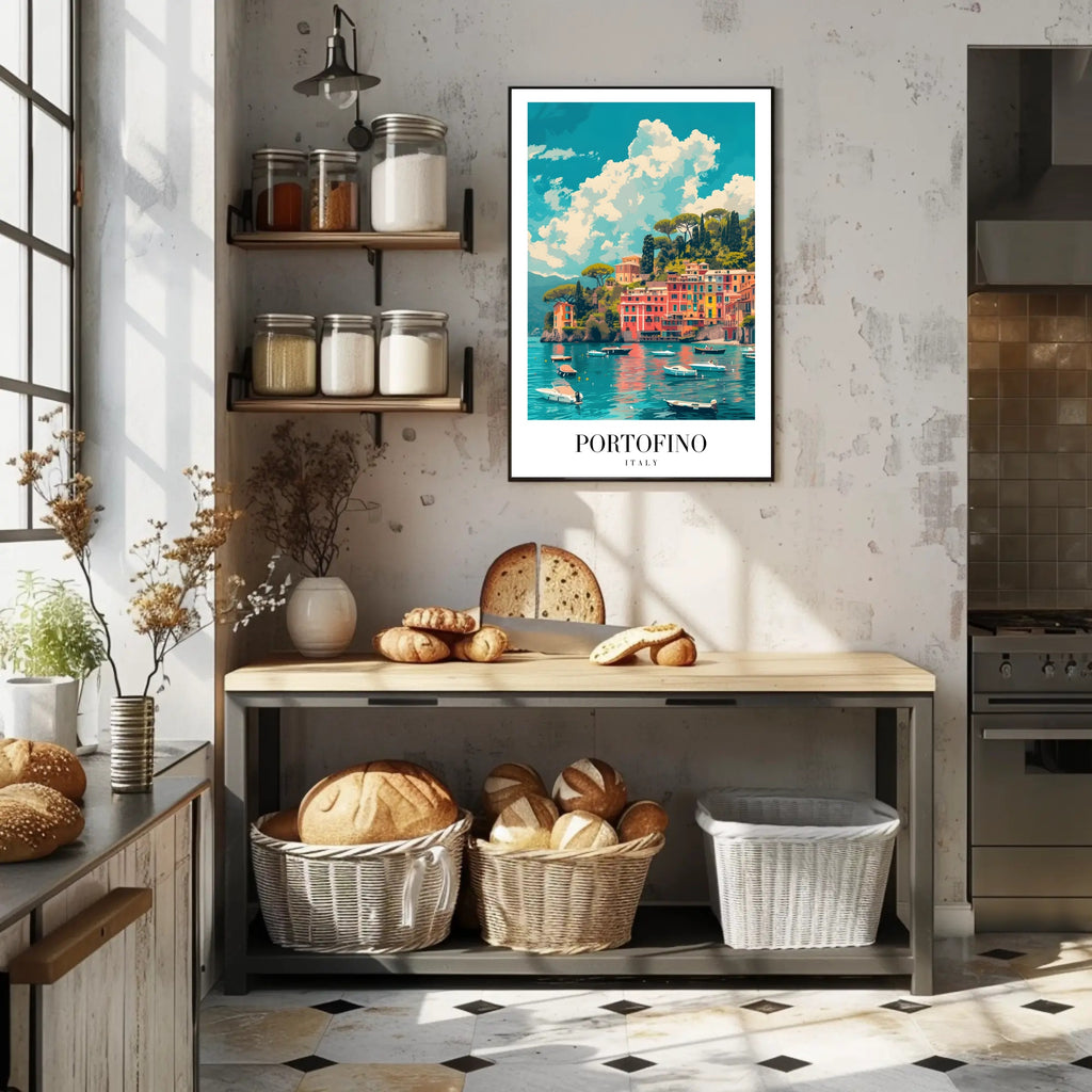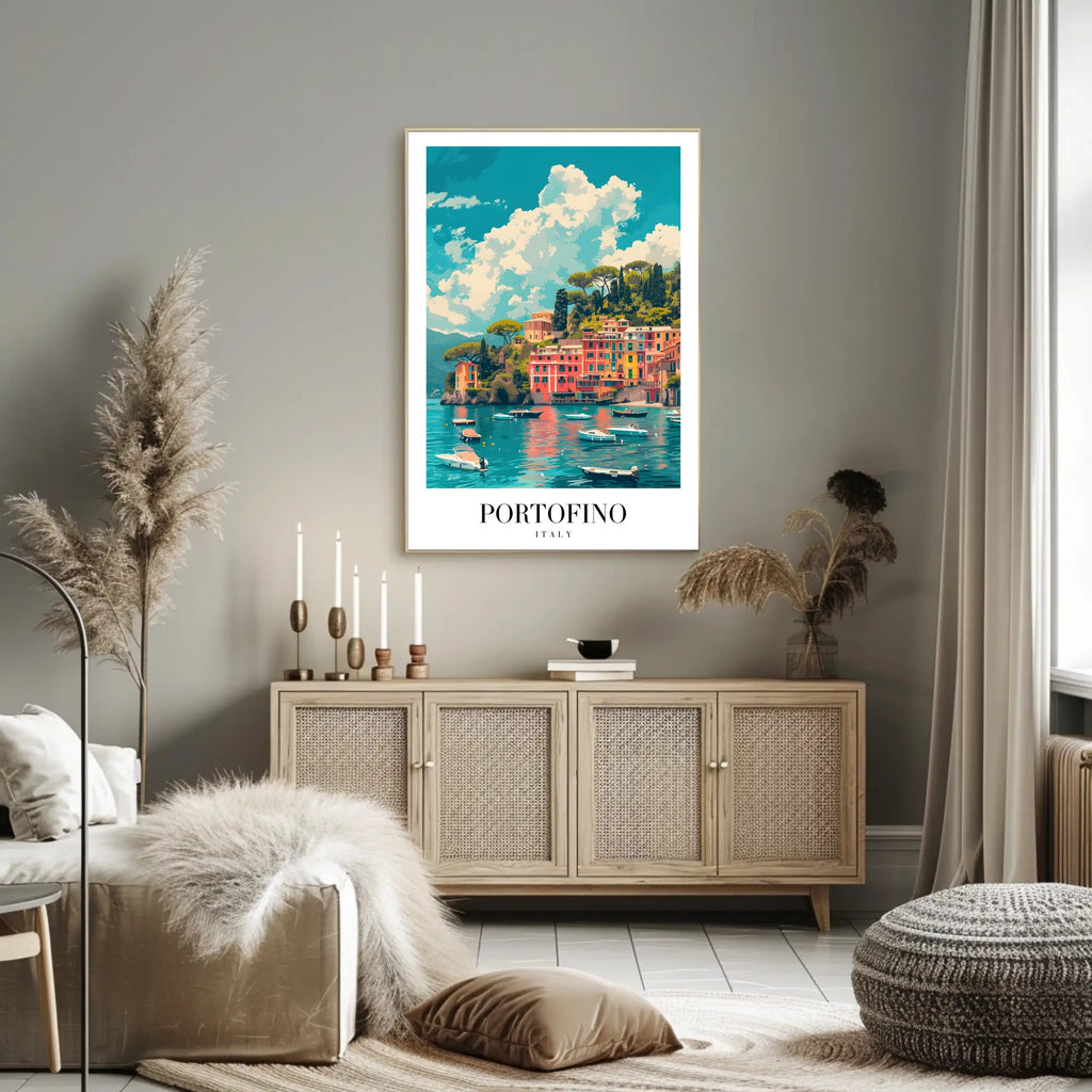 Bring Portofino home: Add a splash of seaside charm to your walls with this Portofino travel poster—perfect as a focal point or as part of a curated gallery wall. Order your PosterGoat print today and transform everyday spaces into scenic escapes.