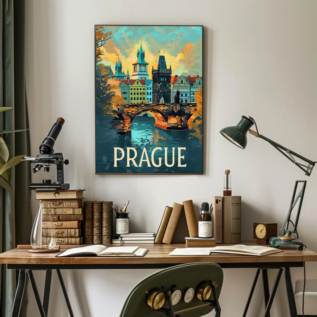 Bring Prague home — whether you’re dressing a gallery wall or accenting a cozy reading nook, this Prague Scenic View Travel Poster turns any space into a window on one of Europe’s most enchanting cities. Add this PosterGoat original to your cart and give your walls a scenic conversation starter.