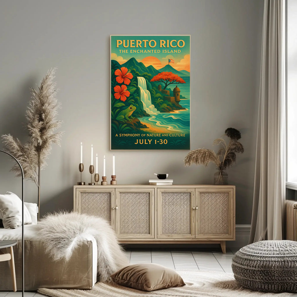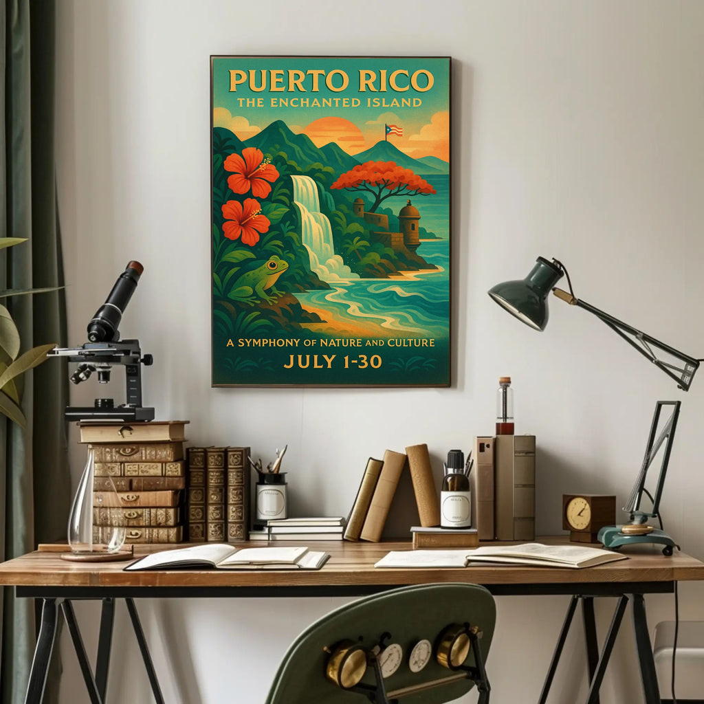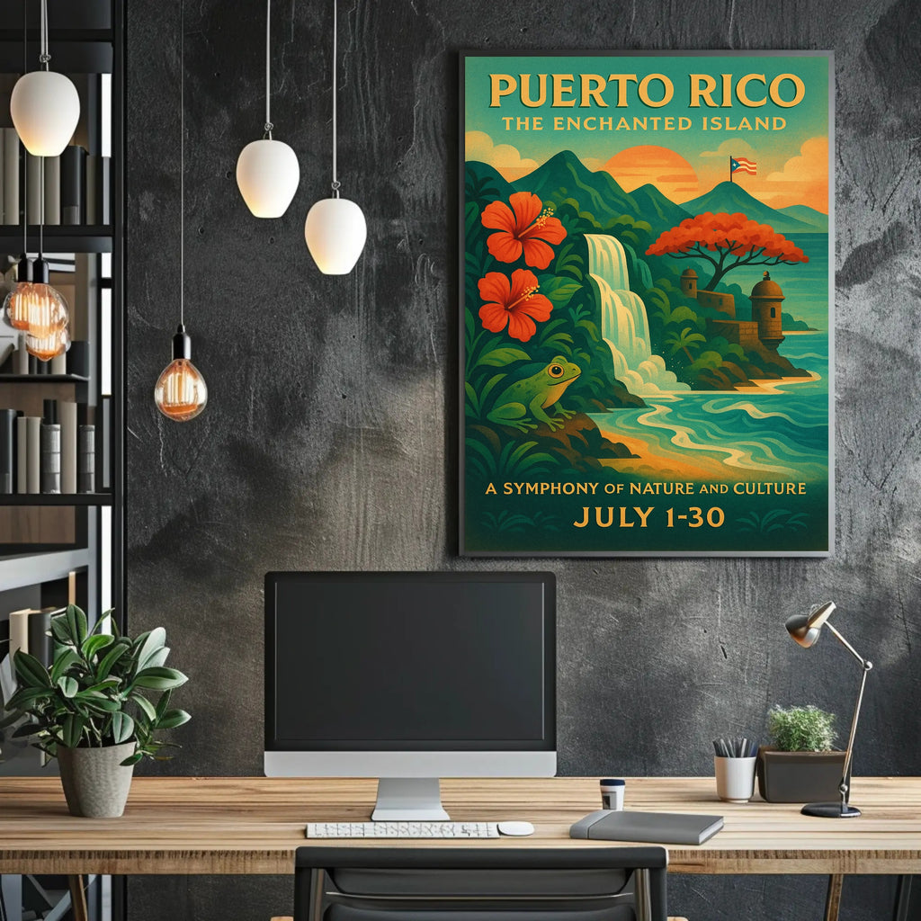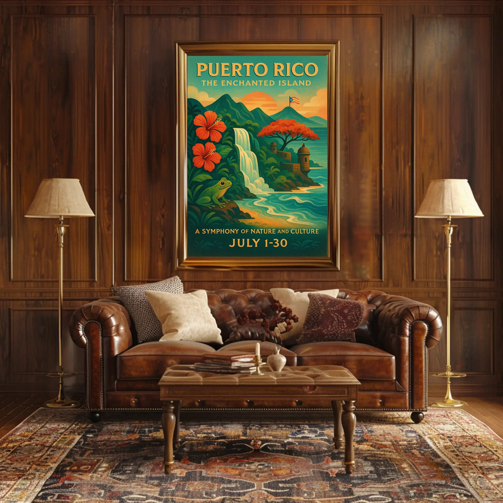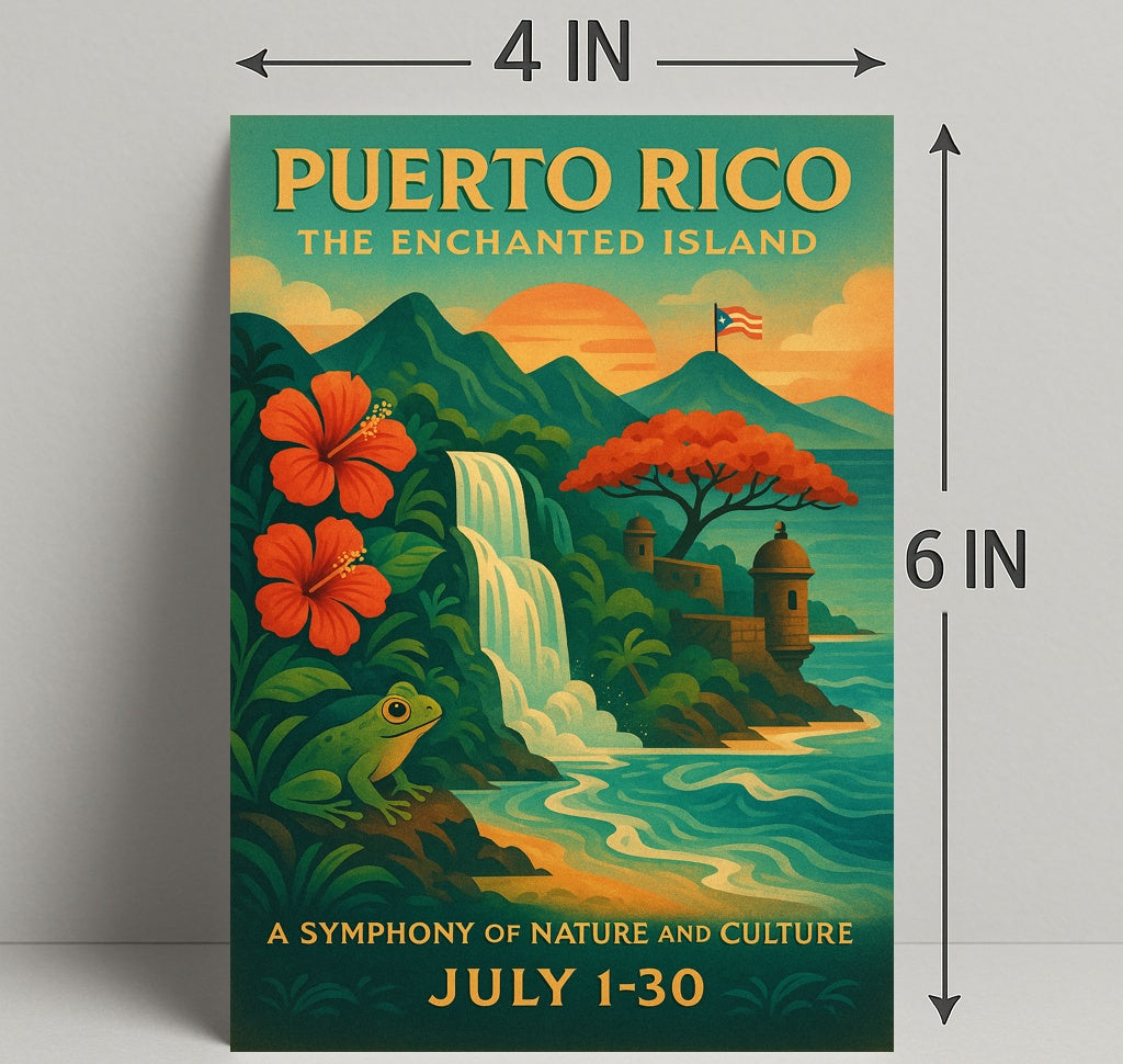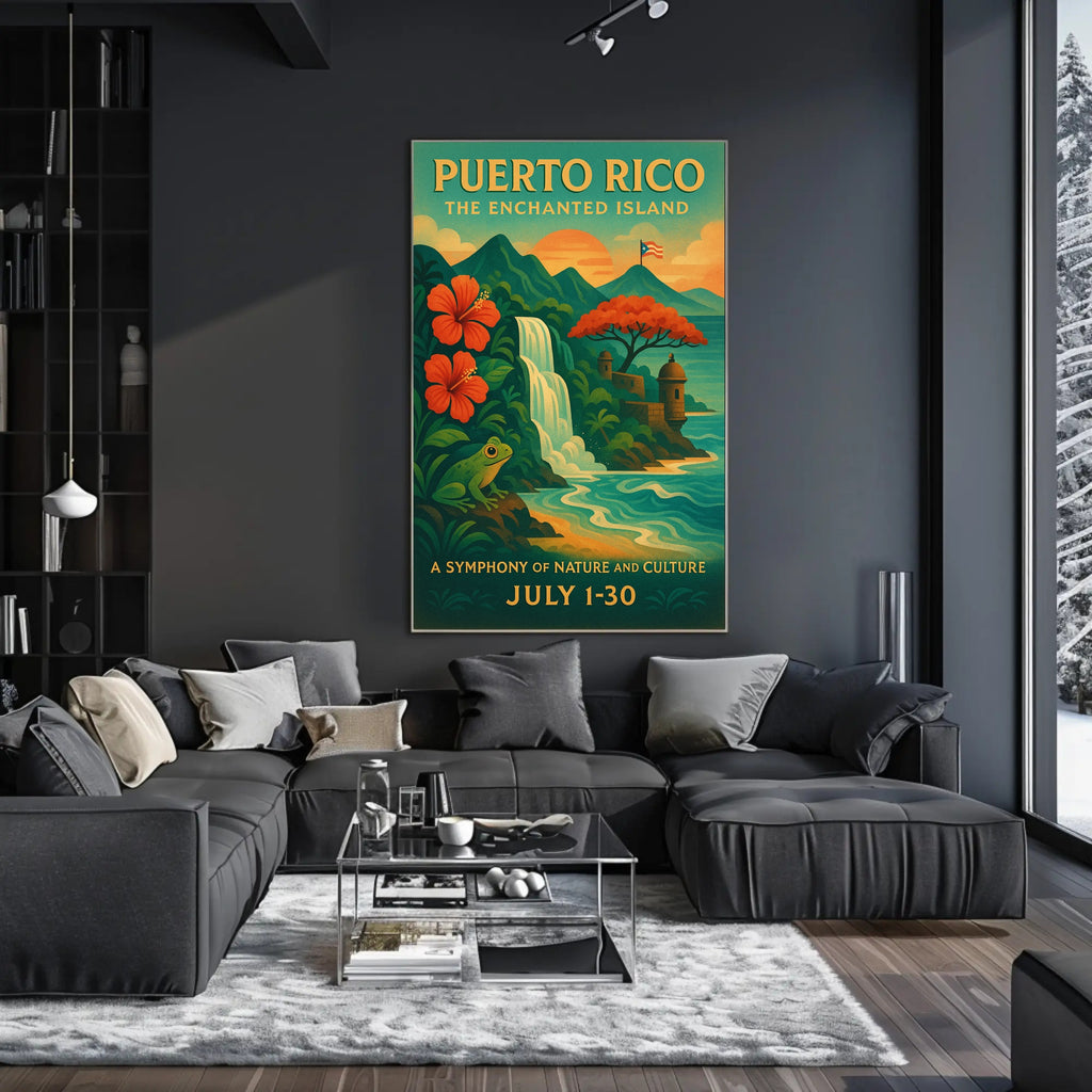 Bring a symphony of nature and culture into your home with this expertly illustrated Puerto Rico poster from PosterGoat — a bold, conversation-starting piece that anchors any gallery wall. Add it to your cart today and let the Enchanted Island brighten your space.