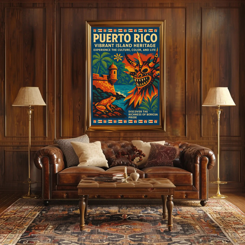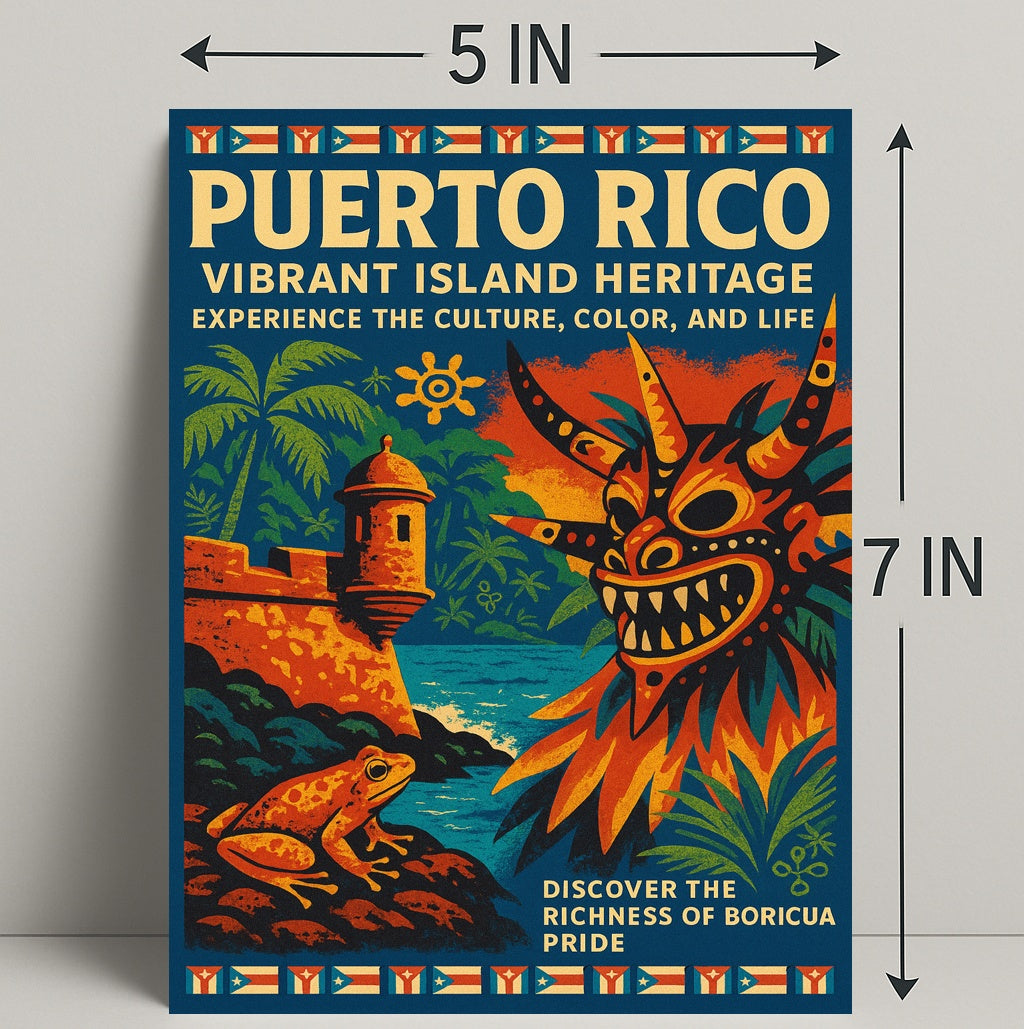 This print works beautifully framed or mounted on its own and makes an unforgettable gift or souvenir that honors Puerto Rico’s culture, color and life. Add a splash of island heritage to your walls — order your PosterGoat Puerto Rico Vibrant Island Heritage Poster today and discover the richness of Boricua pride.