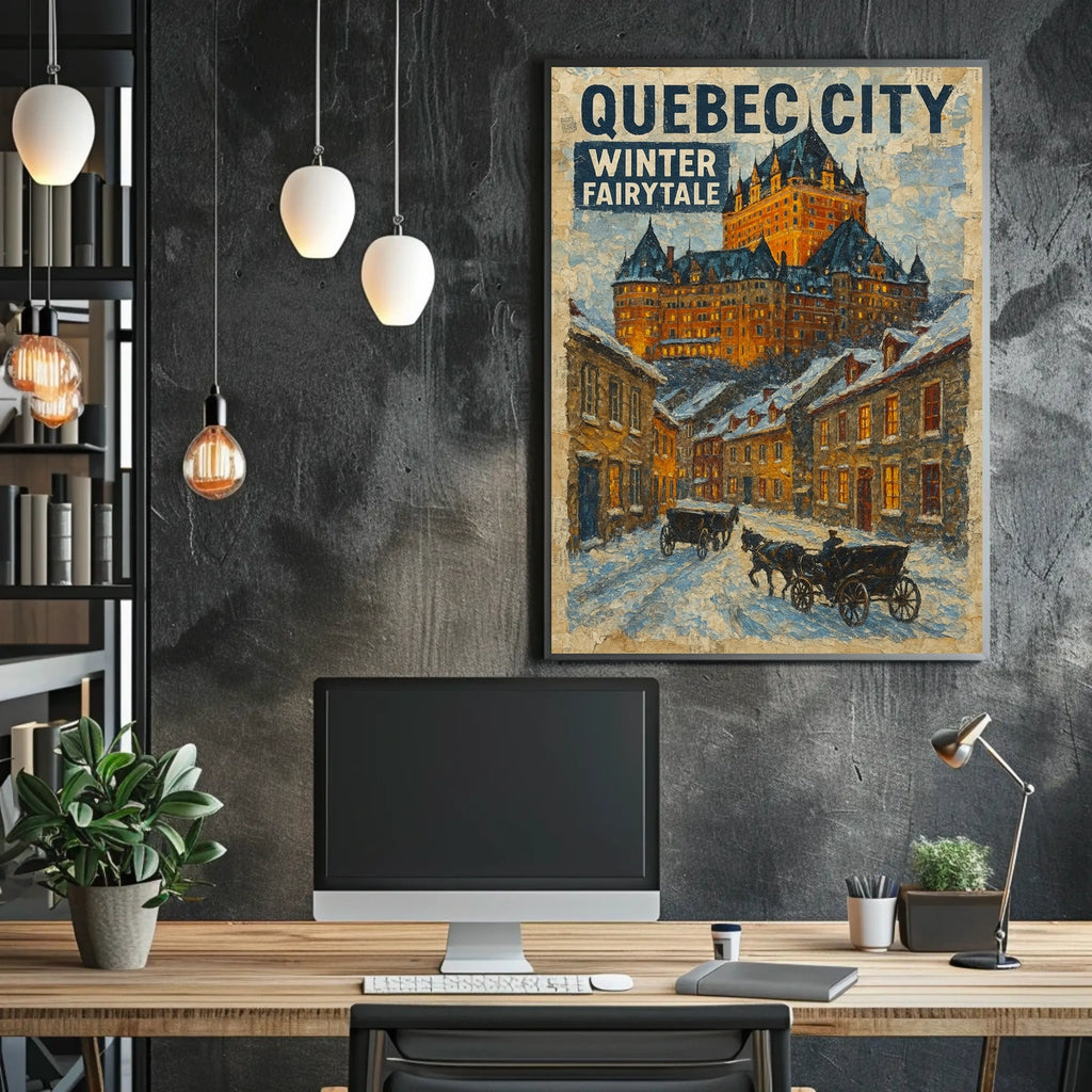 Conversation piece that connects history, culture, and style—bring the Quebec City Winter Fairytale Poster into your home, classroom, or office today and let your walls tell a powerful story