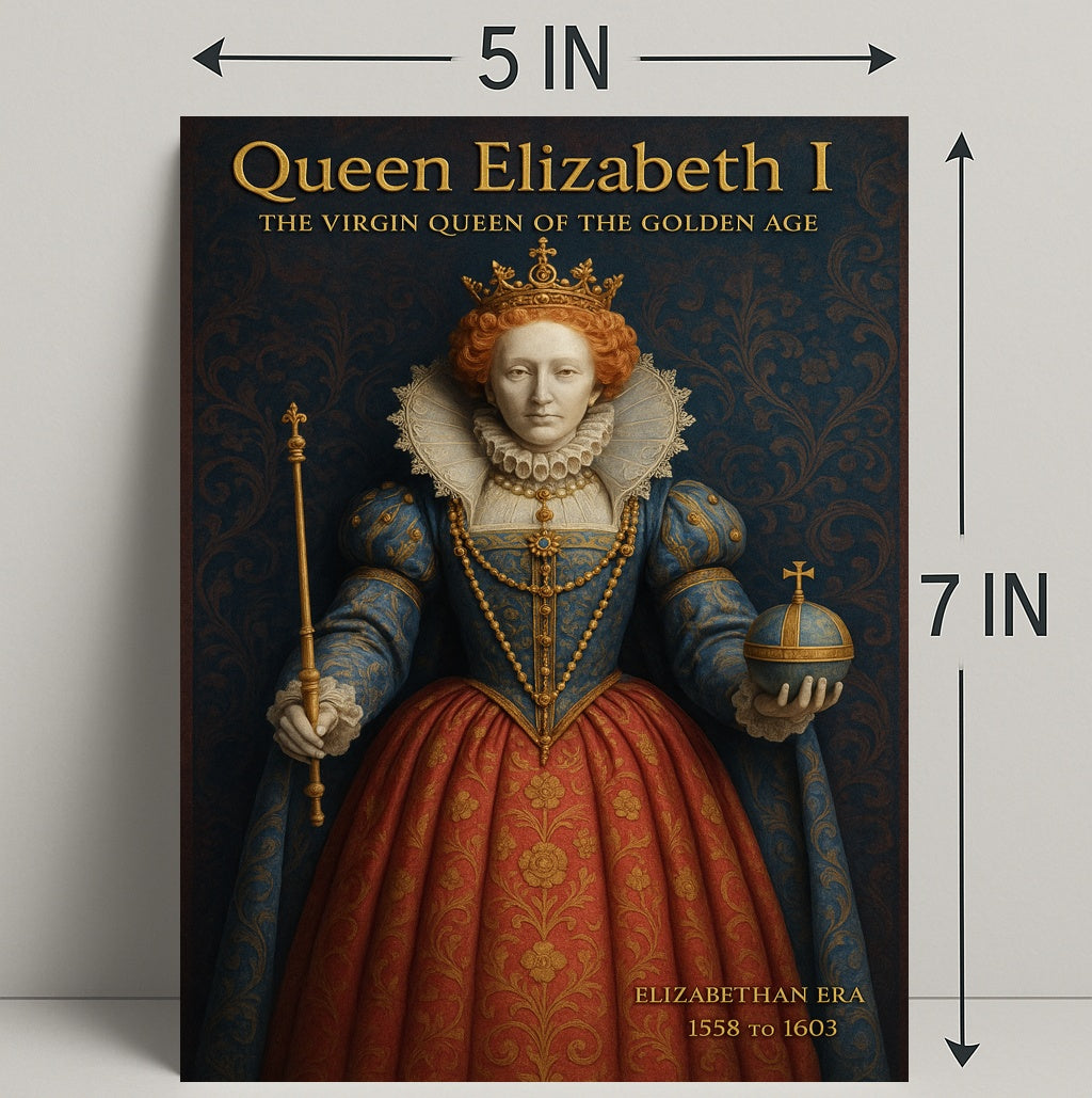 Inspiring Artwork: Features intricate details that bring the regal portrayal of the Virgin Queen to life.