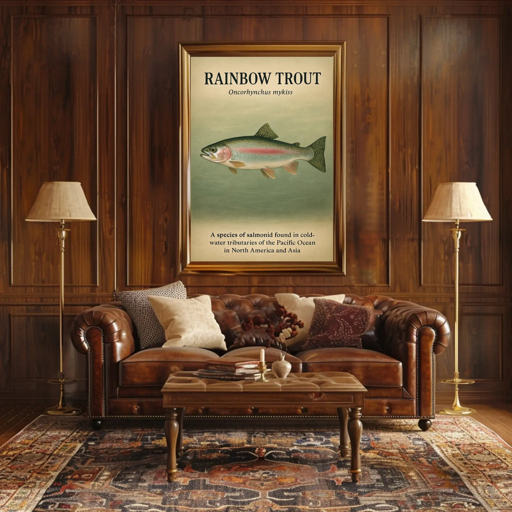 Capture the essence of Rainbow Trout Oncorhynchus mykiss with this artful poster. Designed for decor lovers and wanderlust spirits, it brings a touch of the outdoors into any room, creating a tranquil focal point that sparks conversation and complements a variety of interior styles.