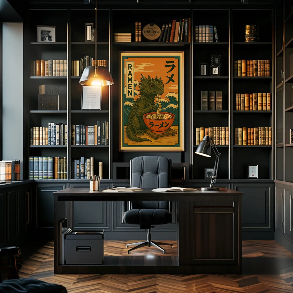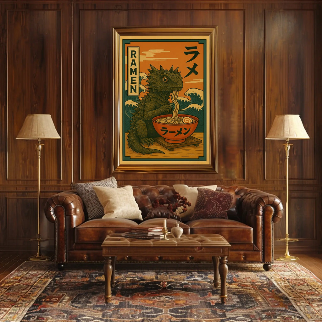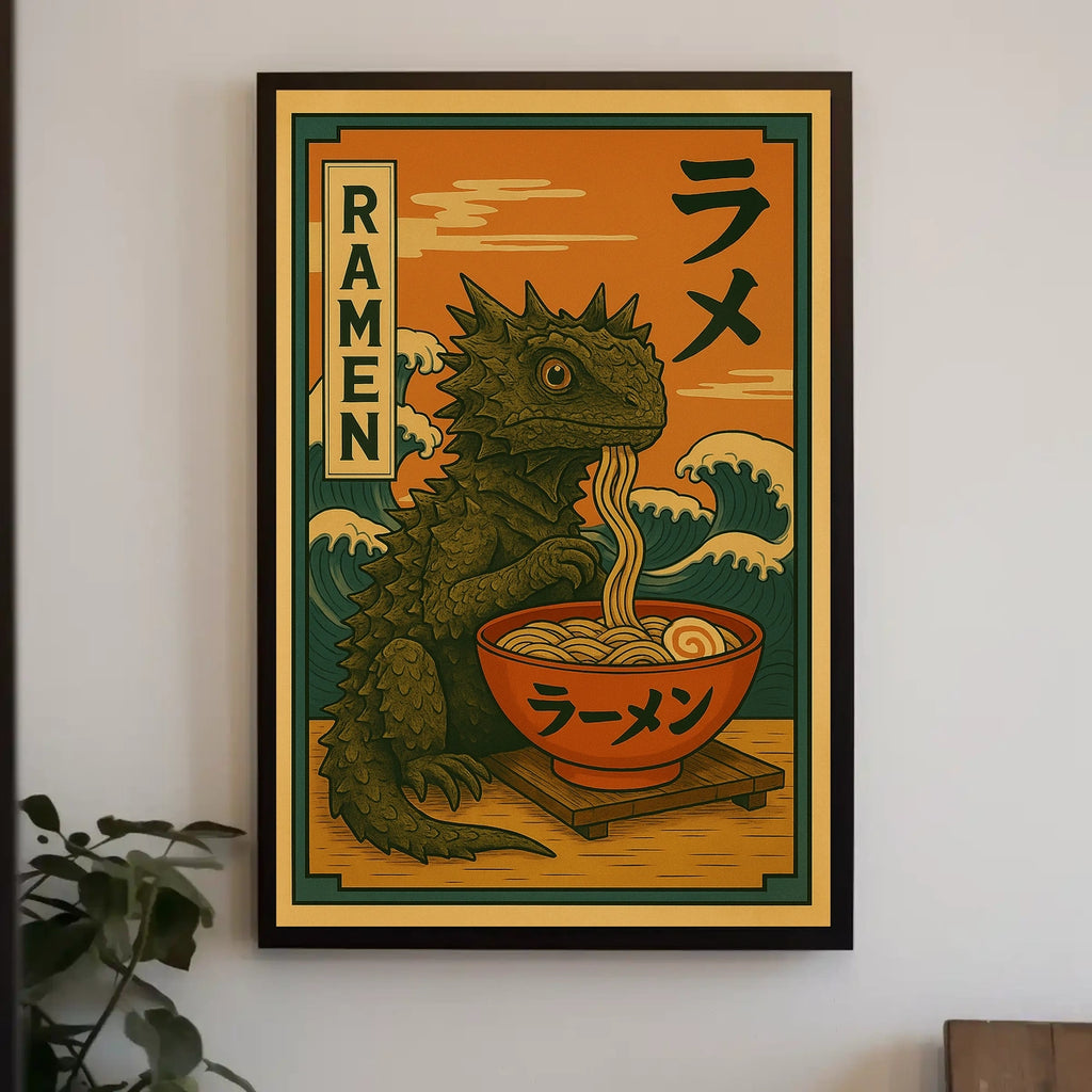 Escape into a playful scene with the Ramen Creature Delight Poster. This art print blends whimsy with real-world scenery, perfect for decor lovers and wanderlust spirits seeking a unique wall accent.