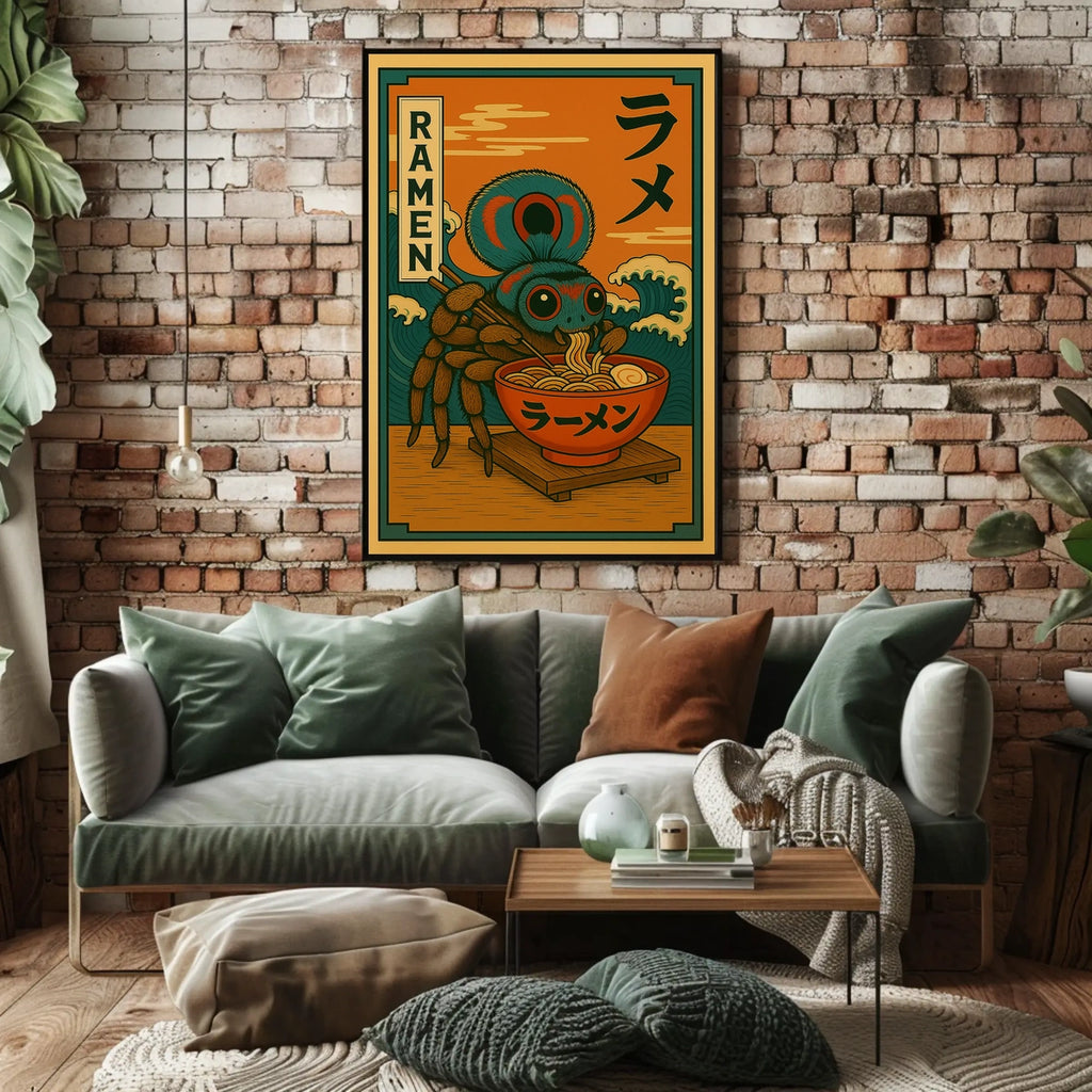 Ramen Spider Delight Poster is a playful, eye-catching art print designed for decor lovers and wanderlust spirits. This poster captures a fusion of ramen-inspired whimsy and real-world scenery, adding charm to any room with its bold colors and imaginative motif.