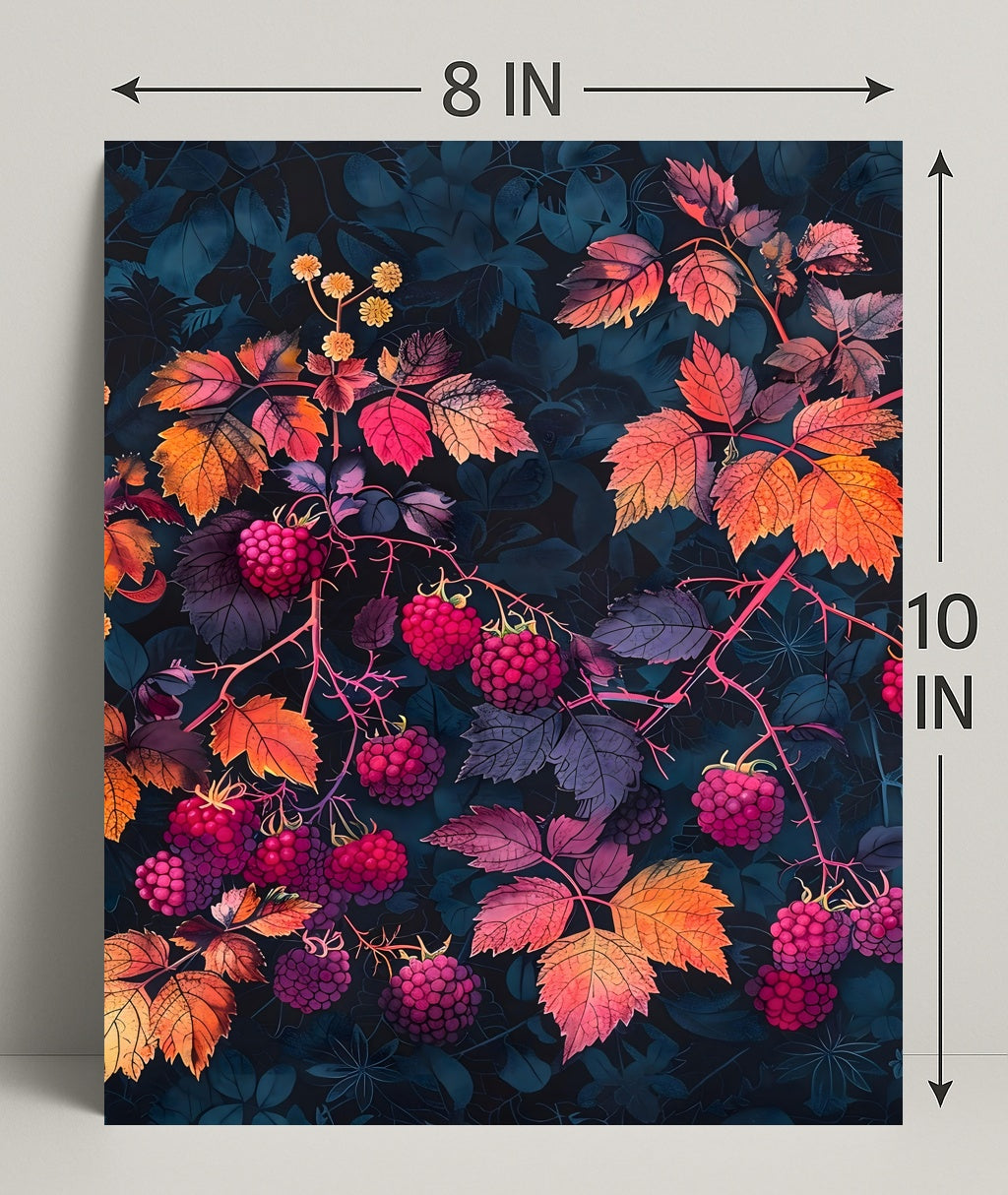 Bring home the beauty of nature with this striking Raspberry Branches Illustration. Its intricate details and stunning design are sure to captivate anyone who sees it. Don’t miss the chance to elevate your decor—order yours today!