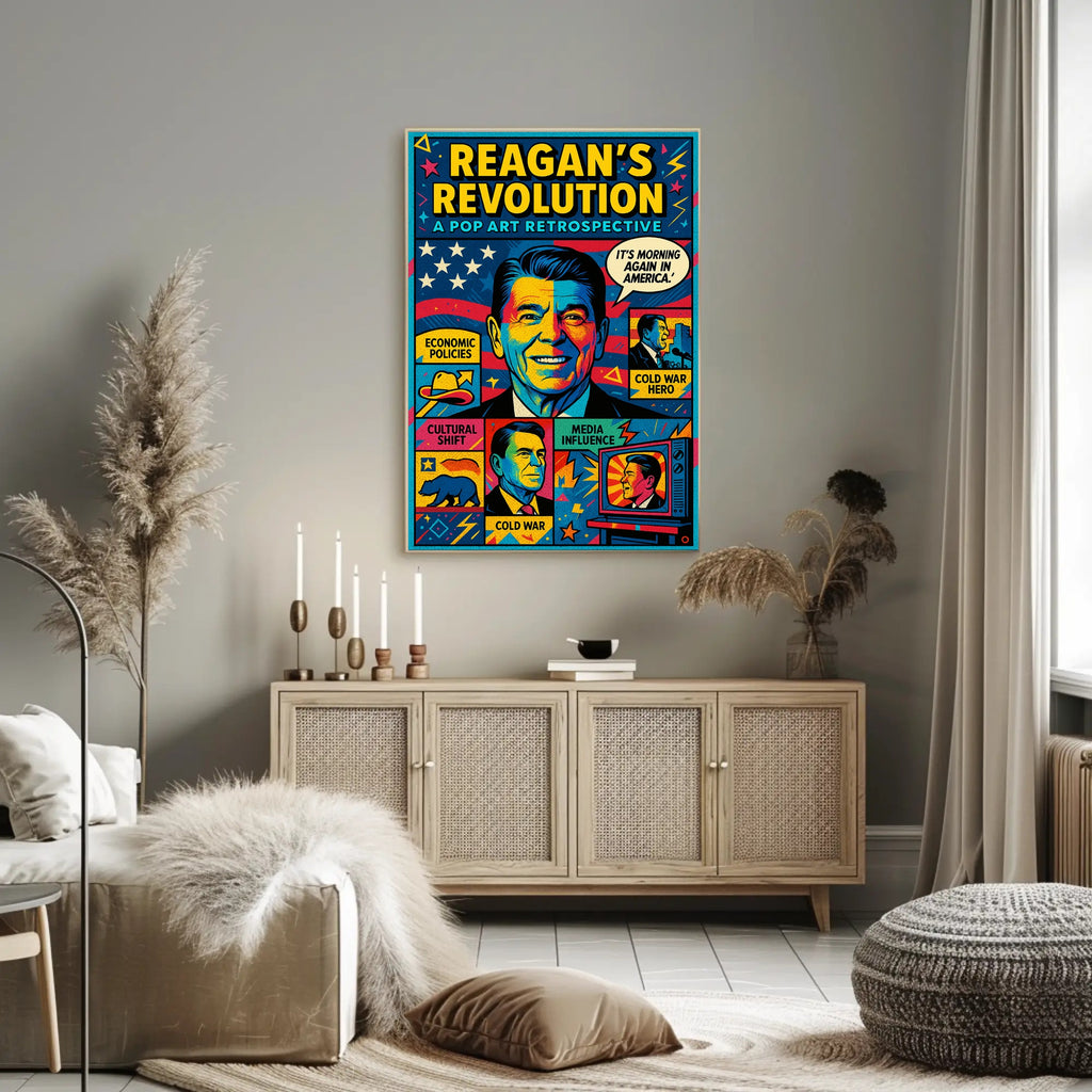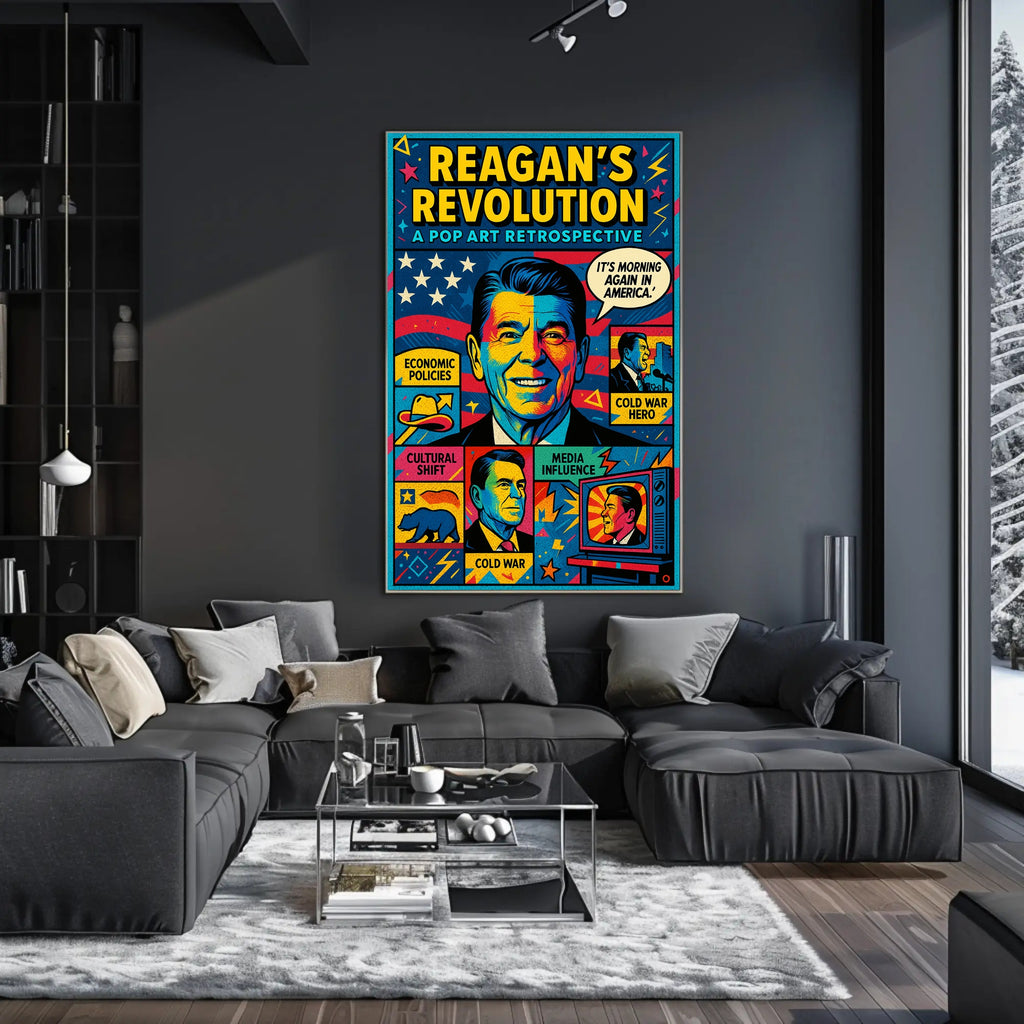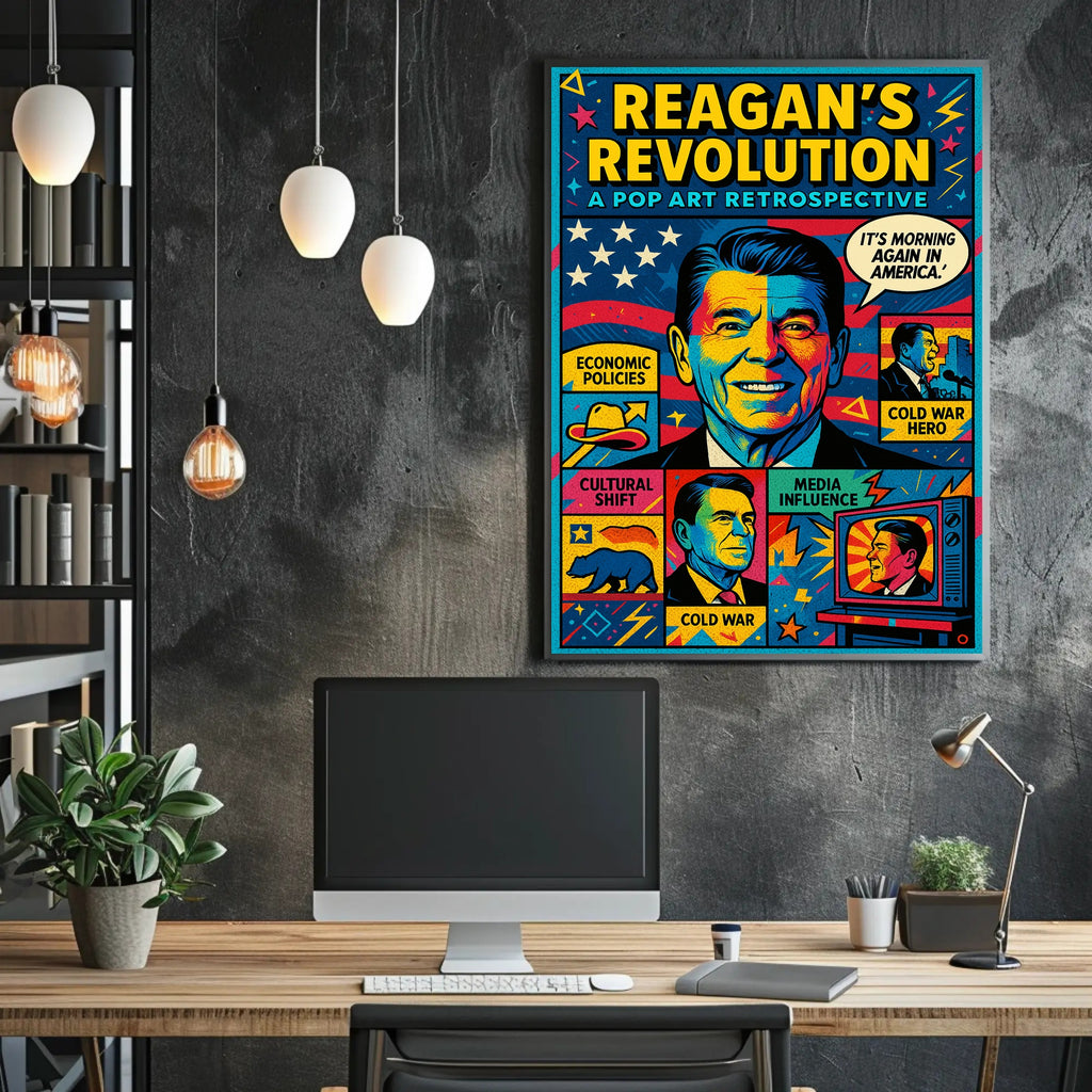 Whether you collect political decor, vintage wall art, or bold pop art prints, this Reagan's Revolution Poster blends cultural storytelling with decorative flair. Add an energetic focal point to your home or gift it to a history and design enthusiast.