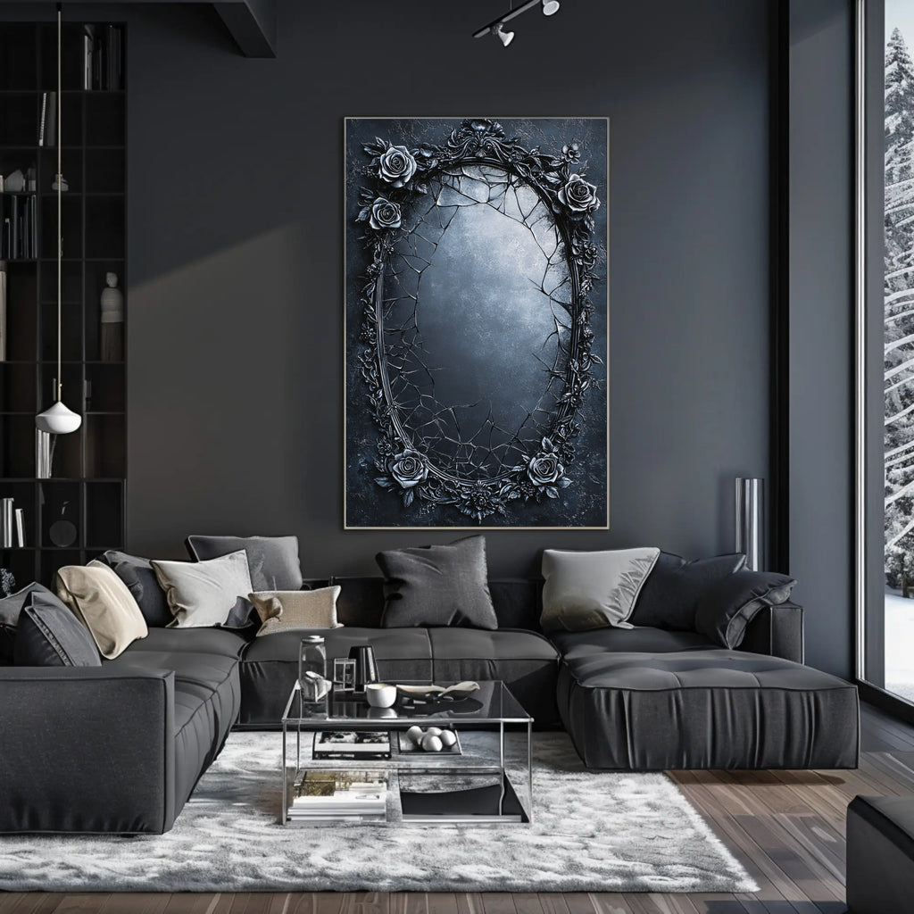 Emotional impact: The shattered-mirror motif and floral frame invite reflection and storytelling, making this piece ideal for living rooms, bedrooms, studios, or gallery walls.