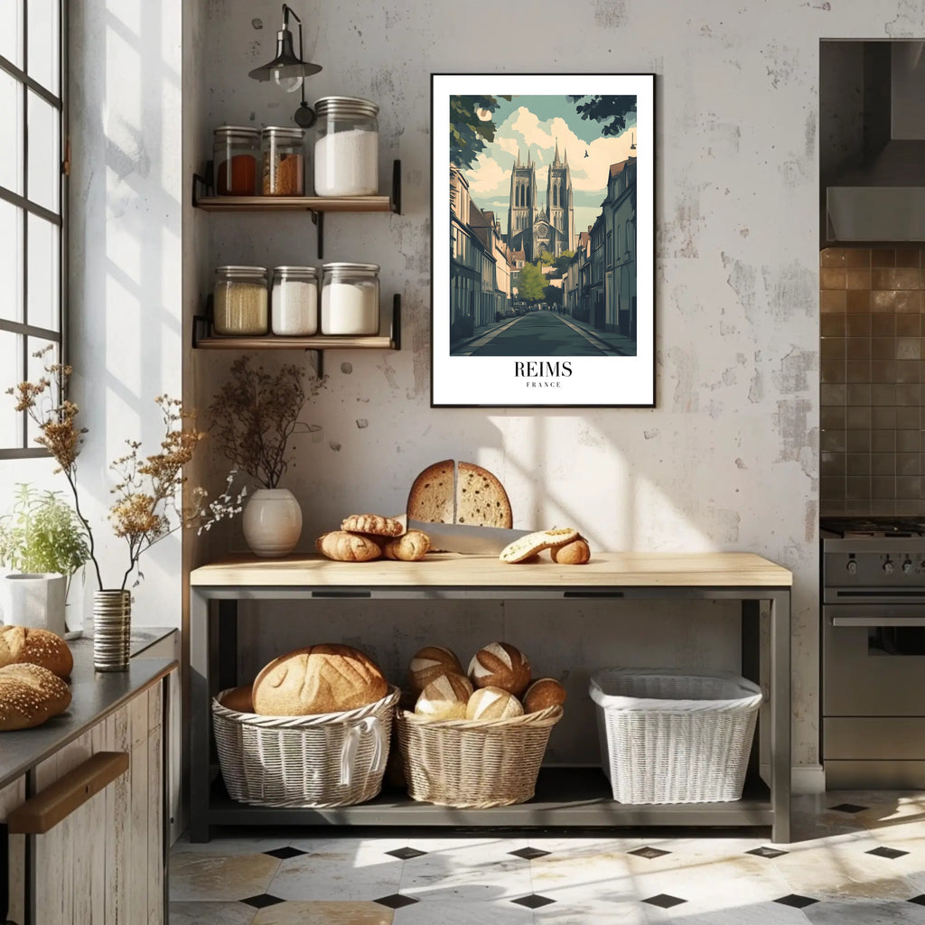 Reims Cathedral Vintage Poster by PosterGoat brings the timeless grandeur of French Gothic architecture into your home with a stylish, travel-inspired print that doubles as elegant wall decor.