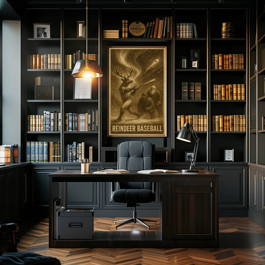 - Printed with precision and made to inspire, this artwork is more than decoration—it’s a conversation piece that connects imagination, nostalgia, and style. Bring REINDEER BASEBALL into your home, classroom, or office today and let your walls tell a magical story.