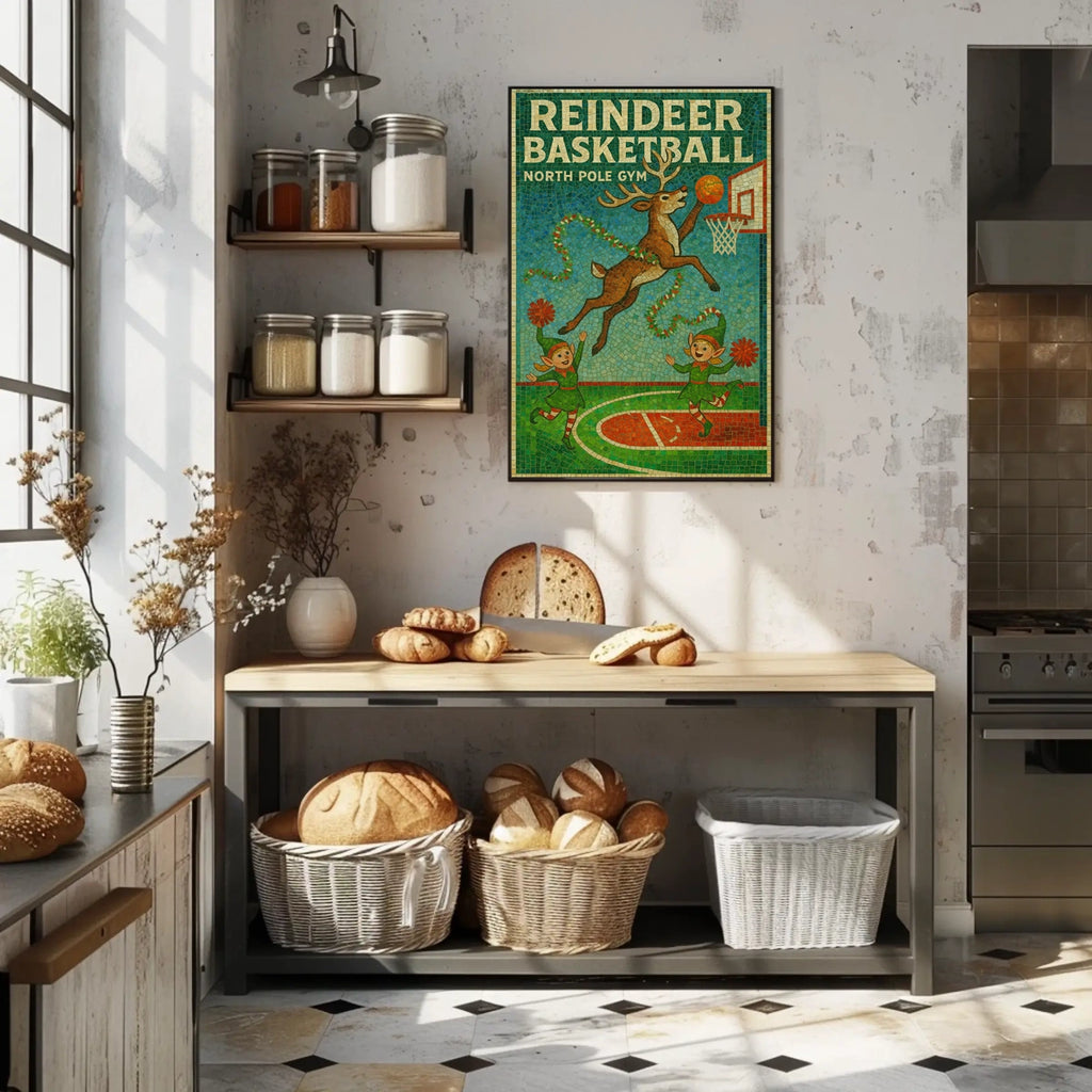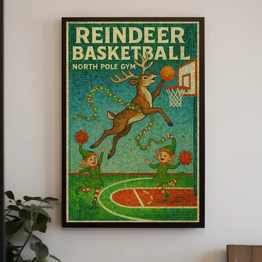 Celebrate the beauty of the Reindeer Basketball at North Pole Gym Poster with this timeless wall art. Designed to capture its unique appeal, this piece is perfect for collectors, enthusiasts, or anyone who wants to bring meaning and inspiration into their space.