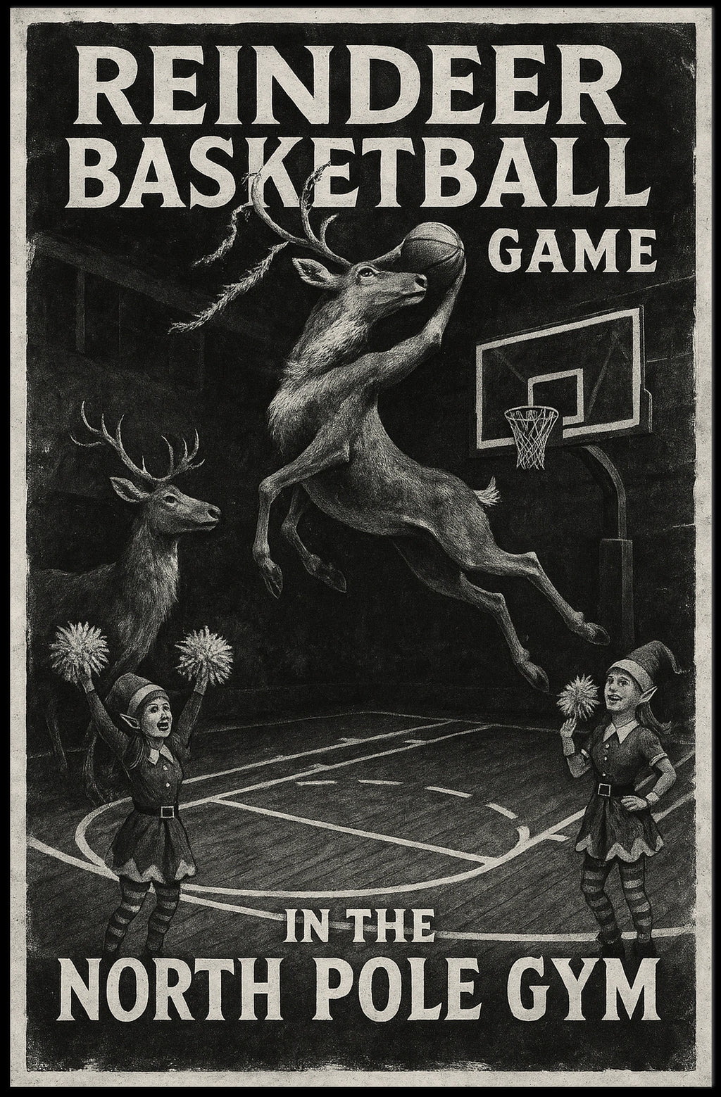 Printed with precision and made to inspire, this artwork is more than decoration—it’s a conversation piece that connects whimsy, nature, and sport. Bring the Reindeer Basketball Game Poster into your home, classroom, or office today and let your walls tell a playful story.