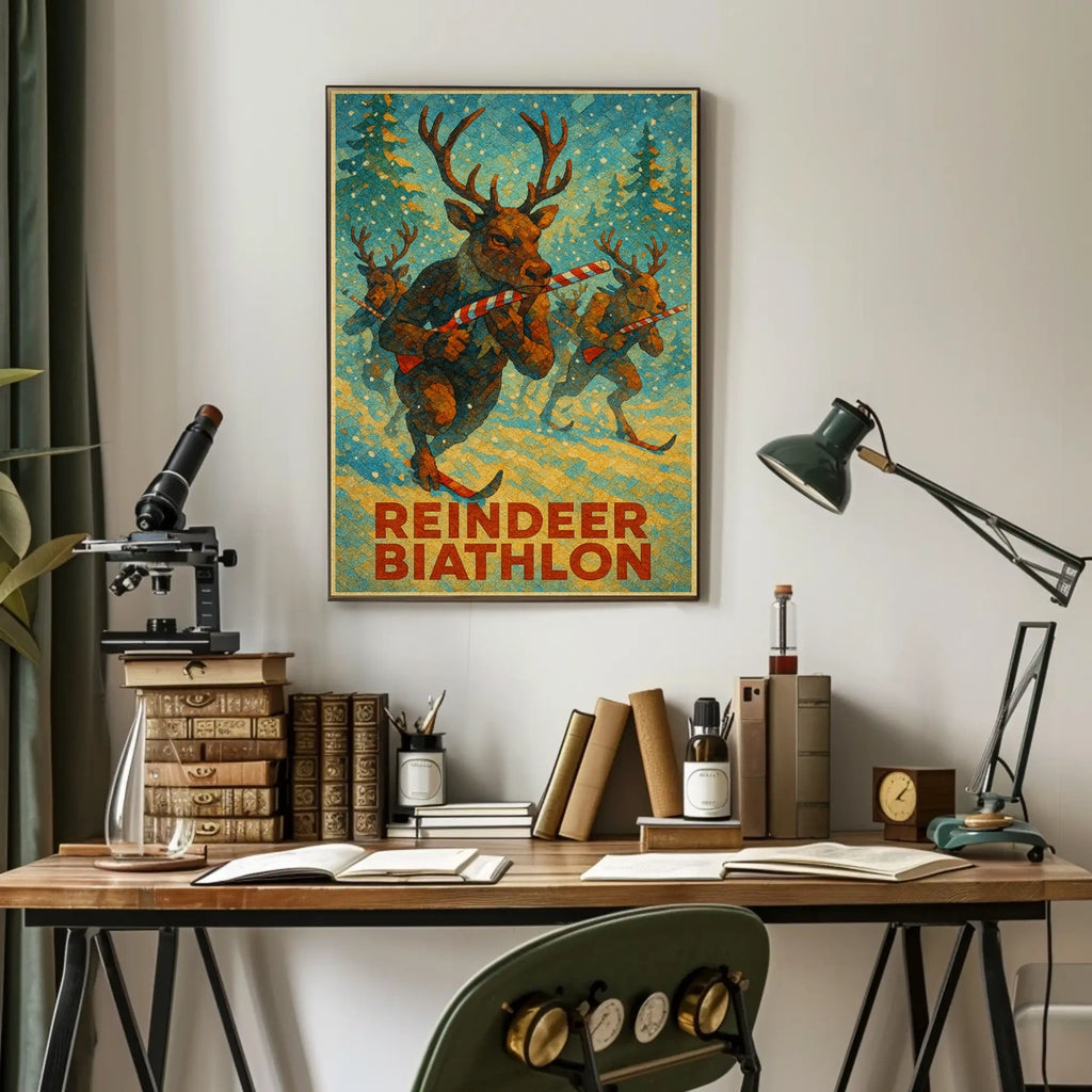Printed with precision and made to inspire, this artwork is more than decoration—it’s a conversation piece that connects nature, sport, and style. Bring Reindeer Biathlon Poster into your home, classroom, or office today and let your walls tell a powerful story.