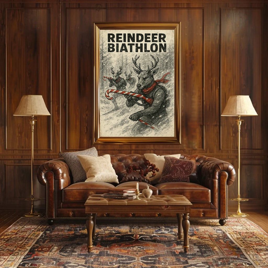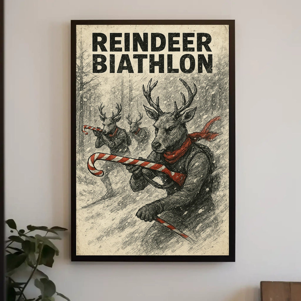 - Printed with precision and made to inspire, this artwork is more than decoration—it’s a conversation piece that connects nature, culture, and style. Bring Reindeer Biathlon into your home, classroom, or office today and let your walls tell a powerful story.