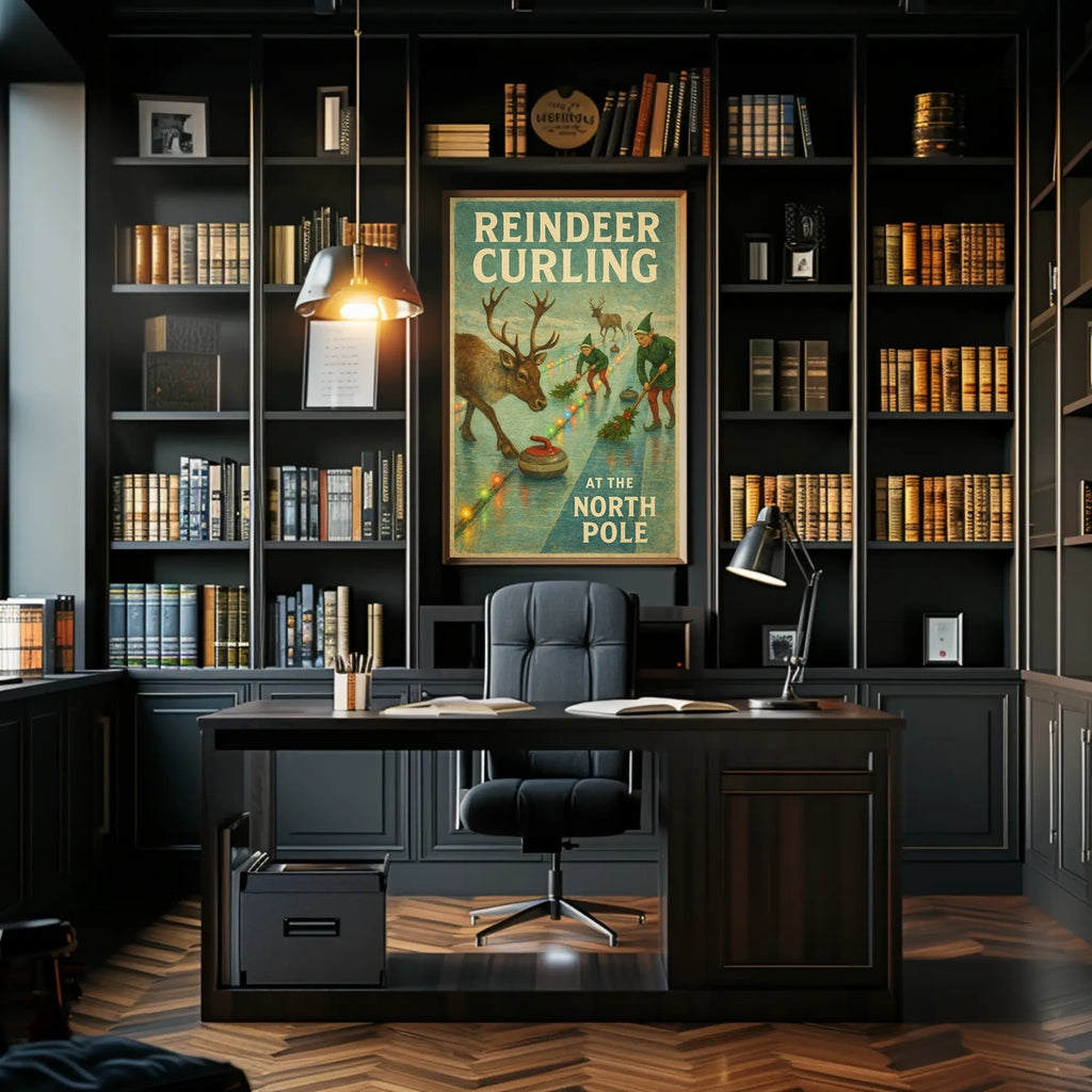 Printed with precision and made to inspire, this artwork is more than decoration—it’s a conversation piece that connects imagination, culture, and travel-inspired style. Bring Reindeer Curling at the North Pole Poster into your home, classroom, or office today and let your walls tell a powerful story.