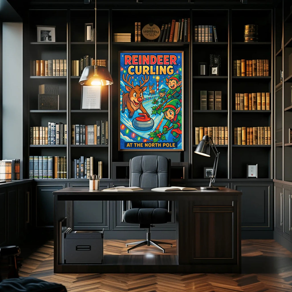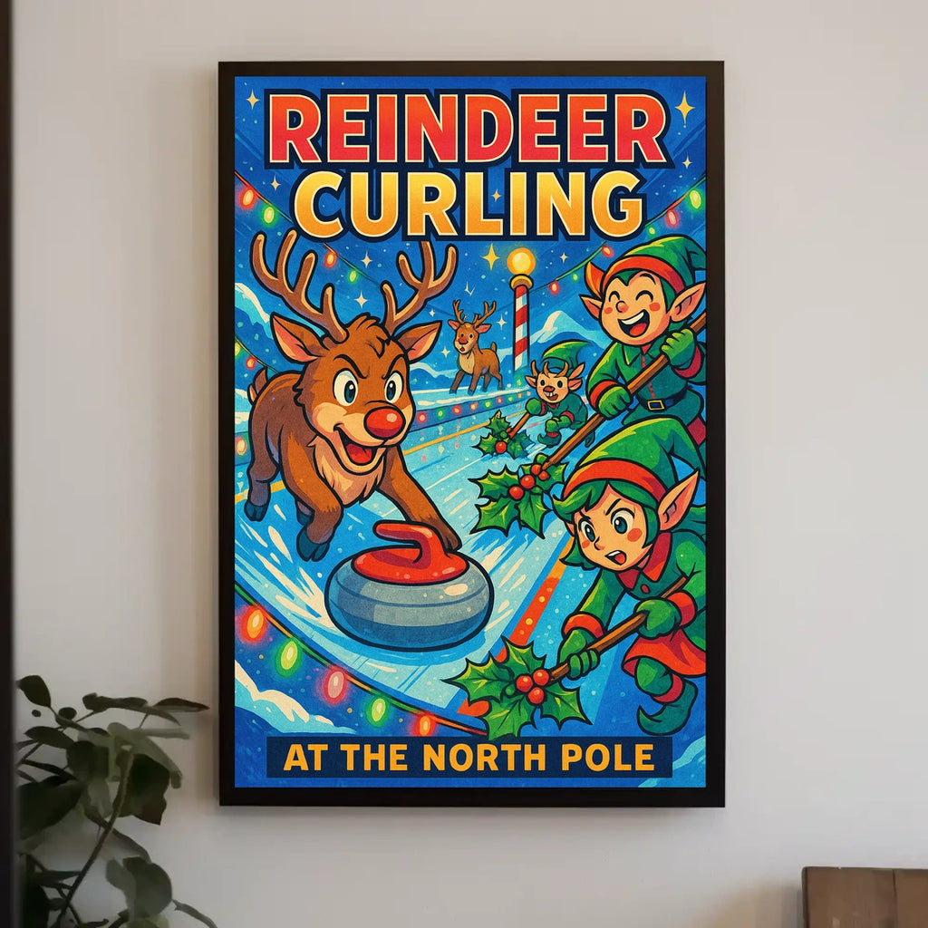Visually inspired by real-world scenery, this poster adds charm to any room and serves as a conversation piece that connects nature, culture, and style. Bring Reindeer Curling at the North Pole Poster into your home, classroom, or office today and let your walls tell a powerful story.