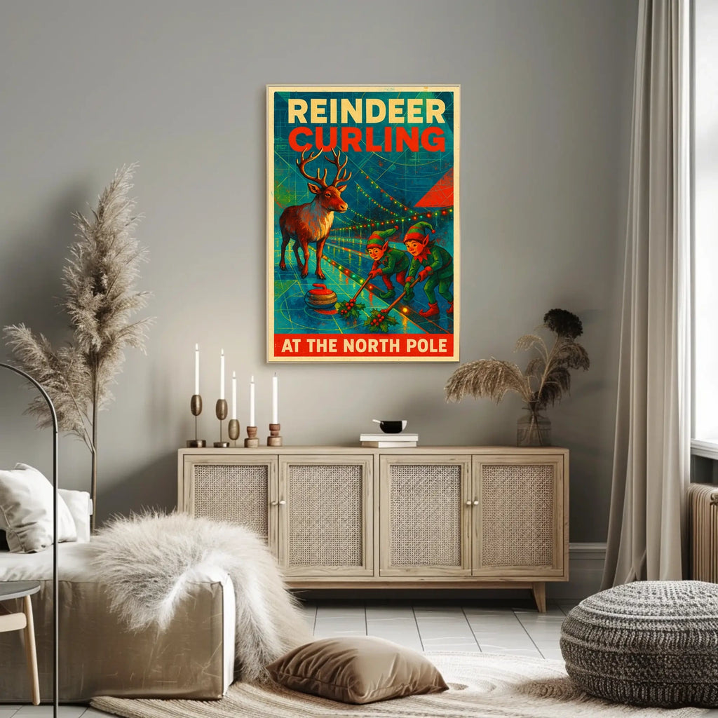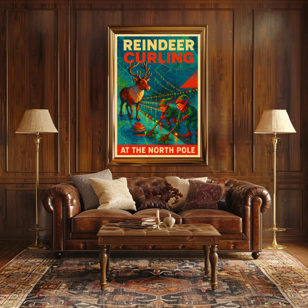 Conversation piece — Printed with precision and made to inspire, this artwork is more than decoration; it connects imagination, travel, and polar scenery. Bring Reindeer Curling at the North Pole Poster into your home, classroom, or office today and let your walls tell a powerful story.