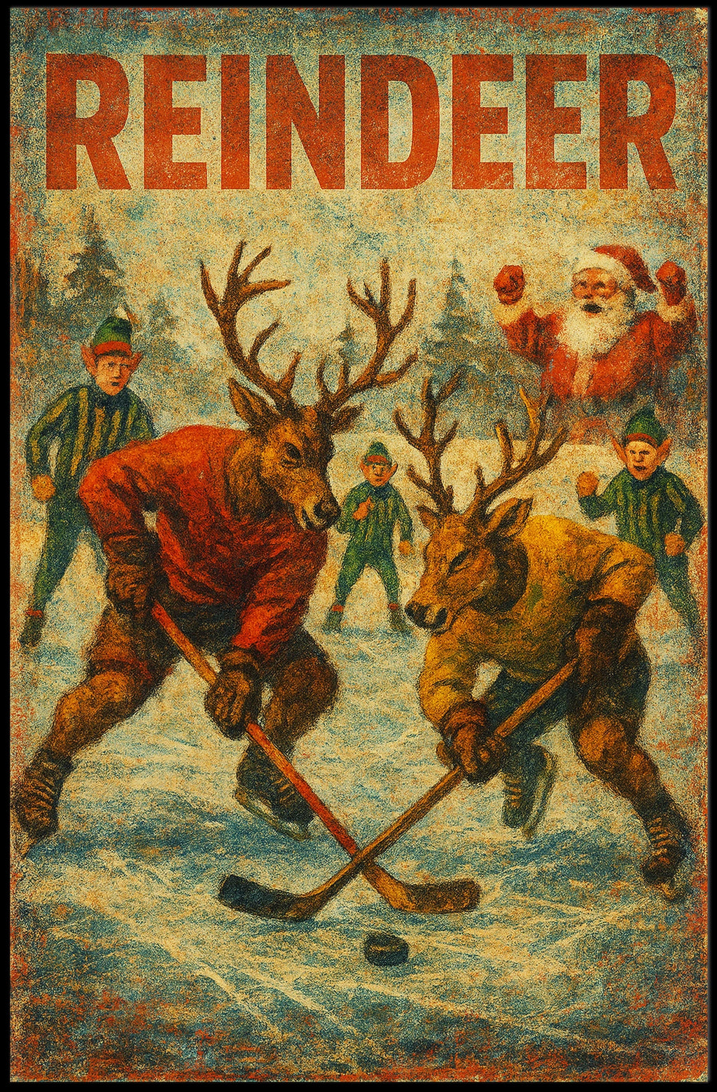 Reindeer Hockey Poster captures the essence of Reindeer Hockey. Designed for decor lovers and wanderlust spirits, this art print adds charm to any room with visuals inspired by real-world scenery.