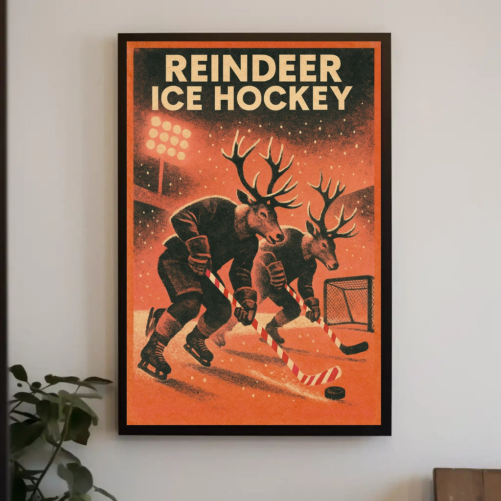 Bring this whimsical reindeer ice hockey scene into your home, classroom, or office today and let your walls tell a powerful story. Perfect for celebrating nostalgic winter sports and retro design, it’s a delightful addition to any seasonal decoration collection.