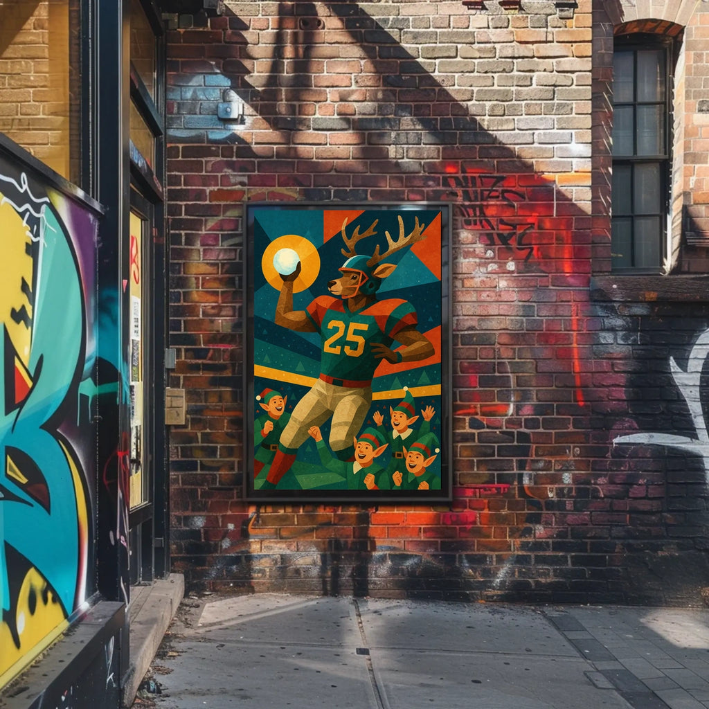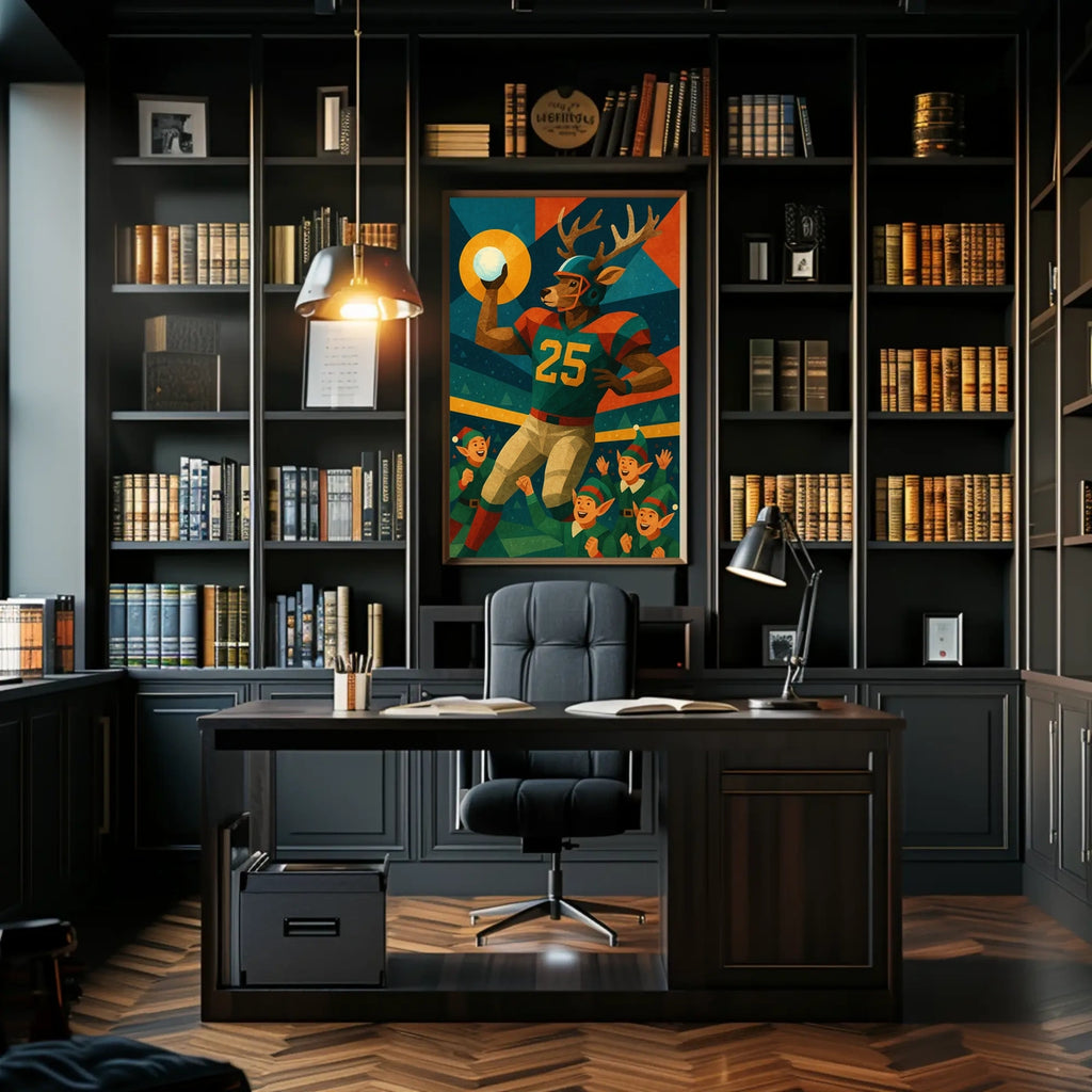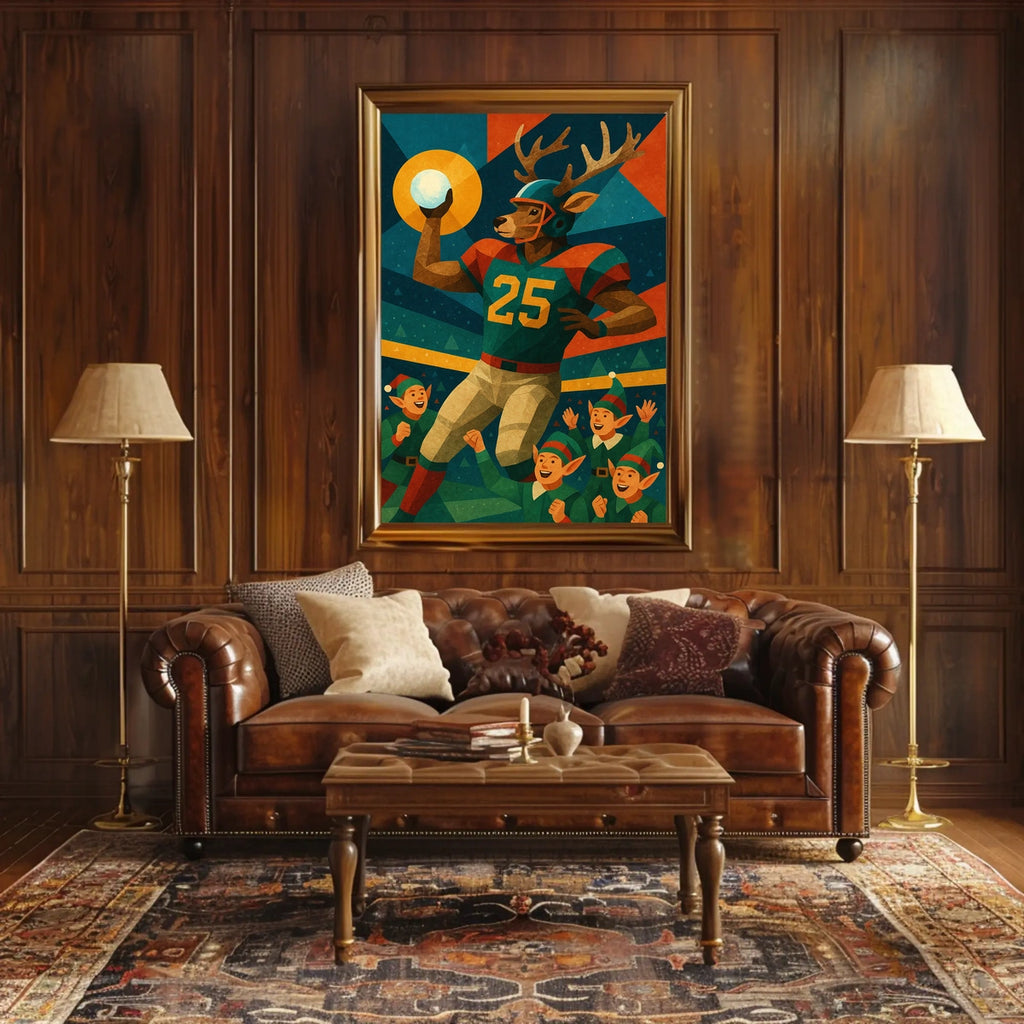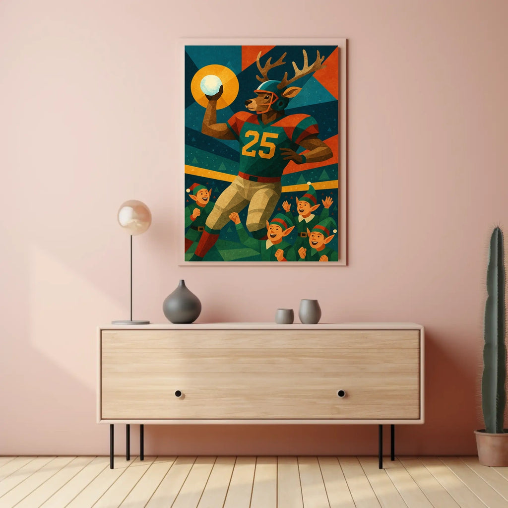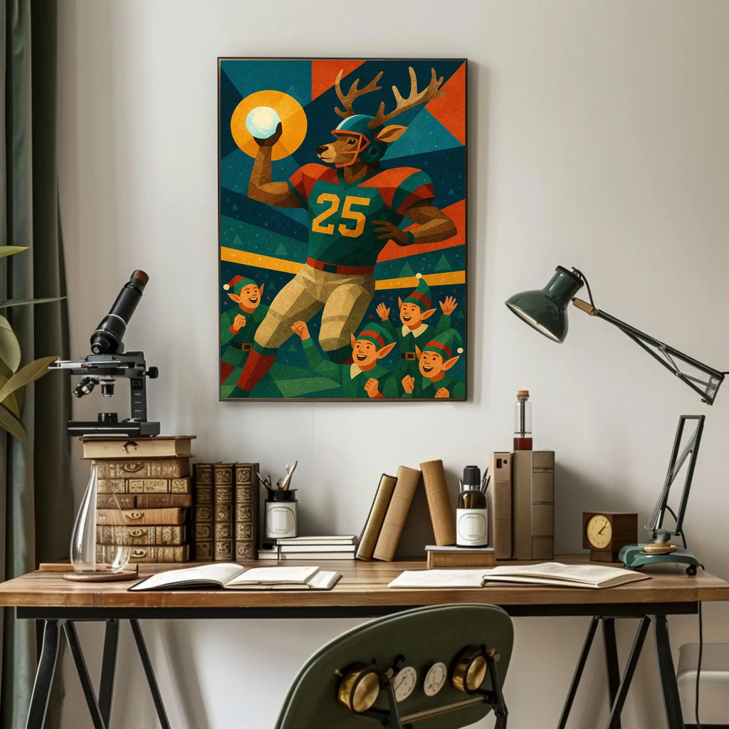 Reindeer Quarterback Extravaganza Poster — Celebrate the beauty of Reindeer Quarterback Extravaganza with this timeless wall art. Designed to capture its unique appeal, this piece is perfect for collectors, enthusiasts, or anyone who wants to bring meaning and inspiration into their space.